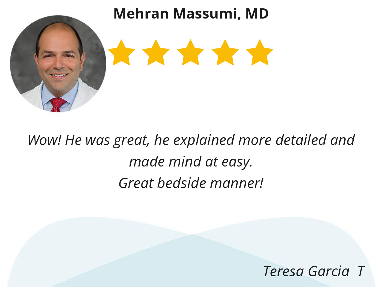 Dr. Massumi is the ultimate professional. I am certain that he not only has my best interest to heart as a patient, but as a person, as well.
