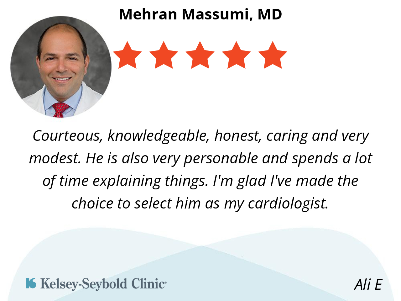Dr. Massumi is a kind, compassionate cardiac doctor. He truly cares about his patients' health. He is professional and very thorough. I trust him completely and are very fortunate to have him as my cardiac doctor.