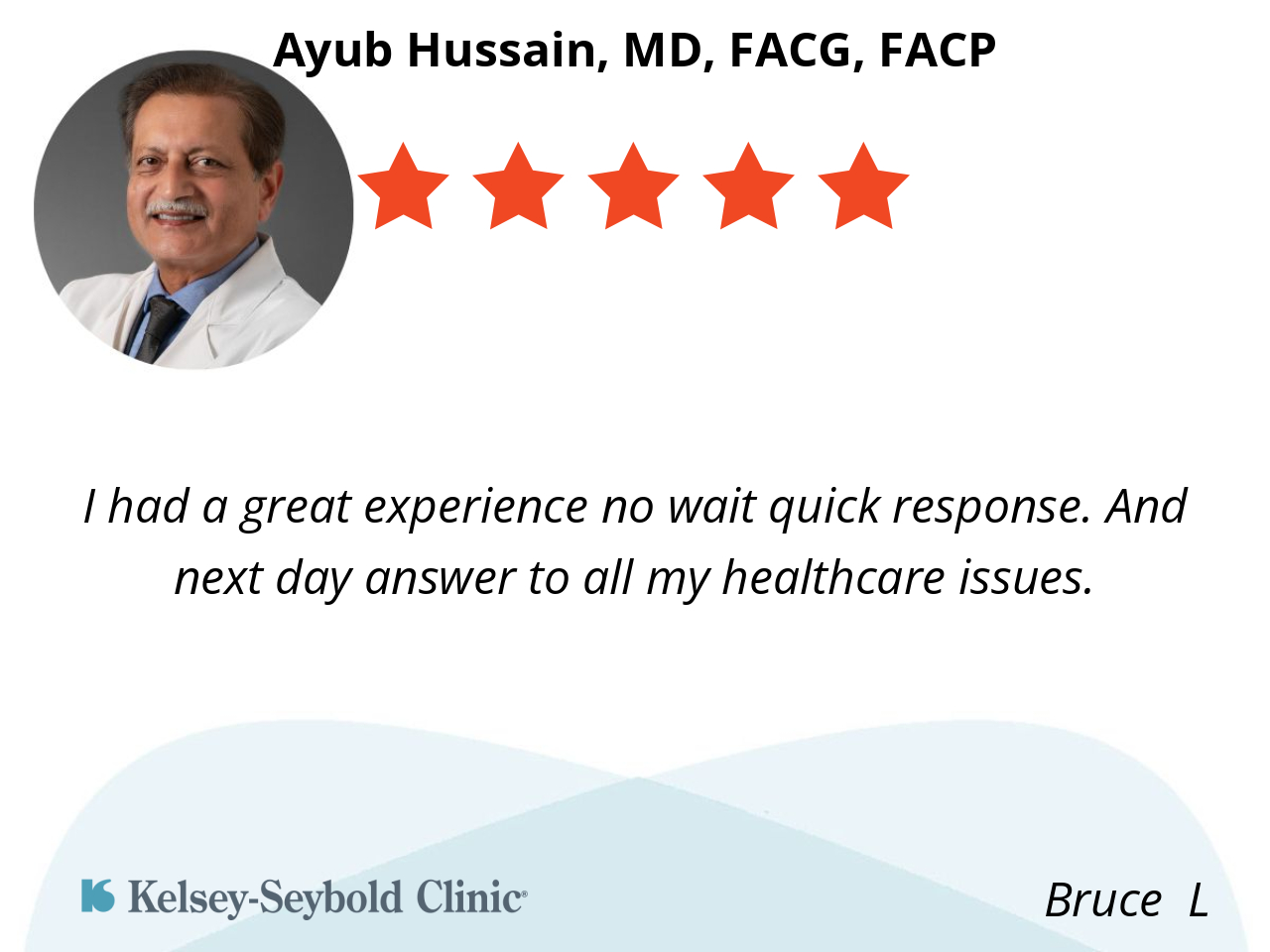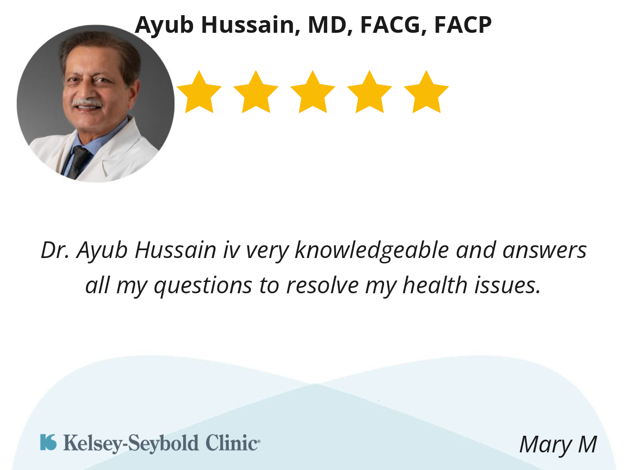 Dr. Ayub Hussain iv very knowledgeable and answers all my questions to resolve my health issues.
