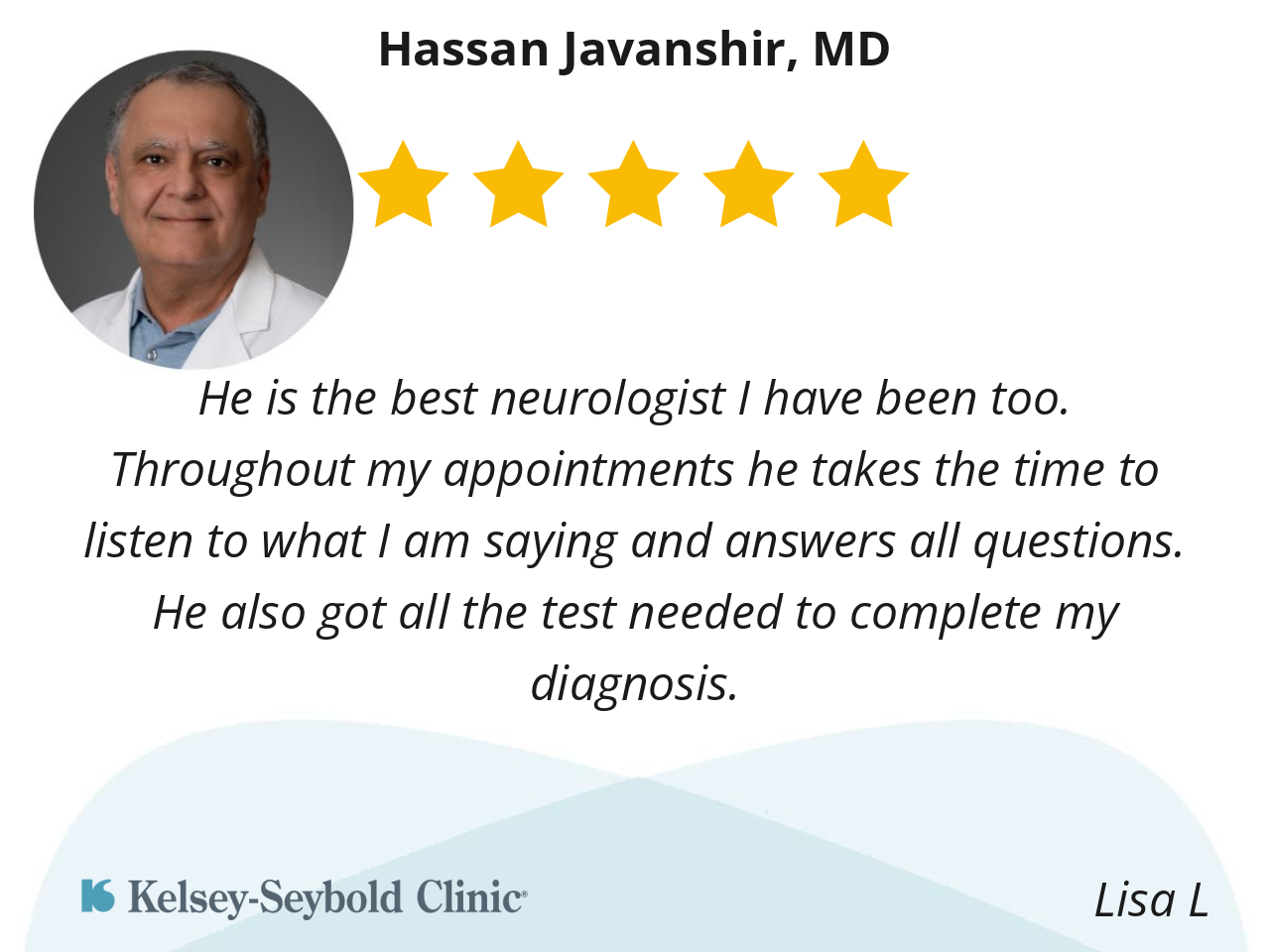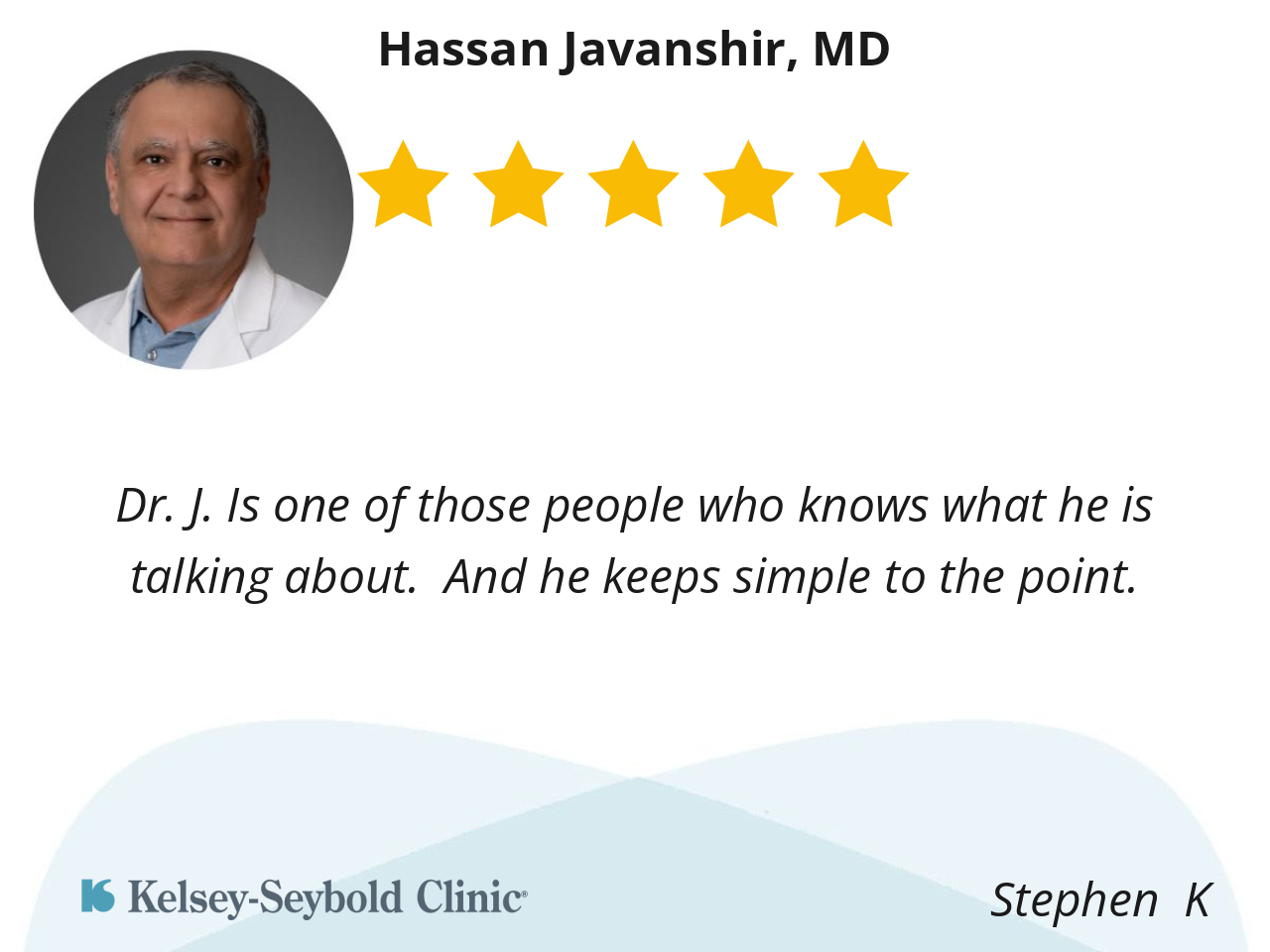 Dr Javanshir is easy to talk to and listens to his patients. Has excellent bedside manner and is very knowledgeable. I can recommend him highly.