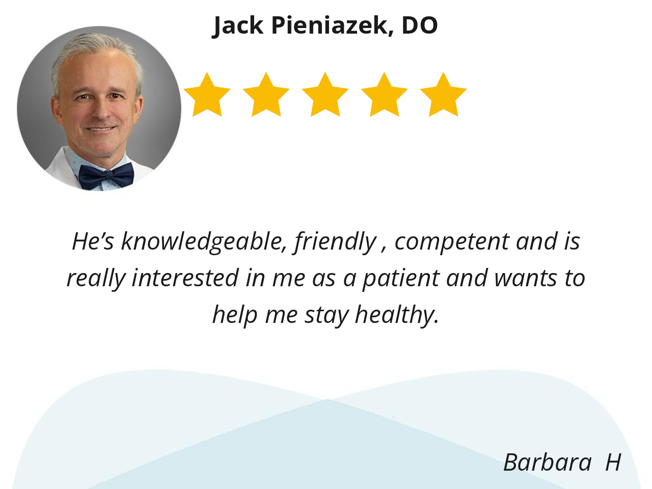 He’s knowledgeable, friendly , competent and is really interested in me as a patient and wants to help me stay healthy.