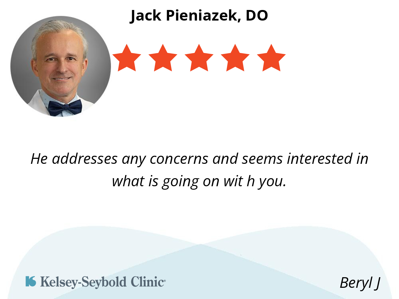 He is easy to talk to, he listens. Good bedside manner, very personable.