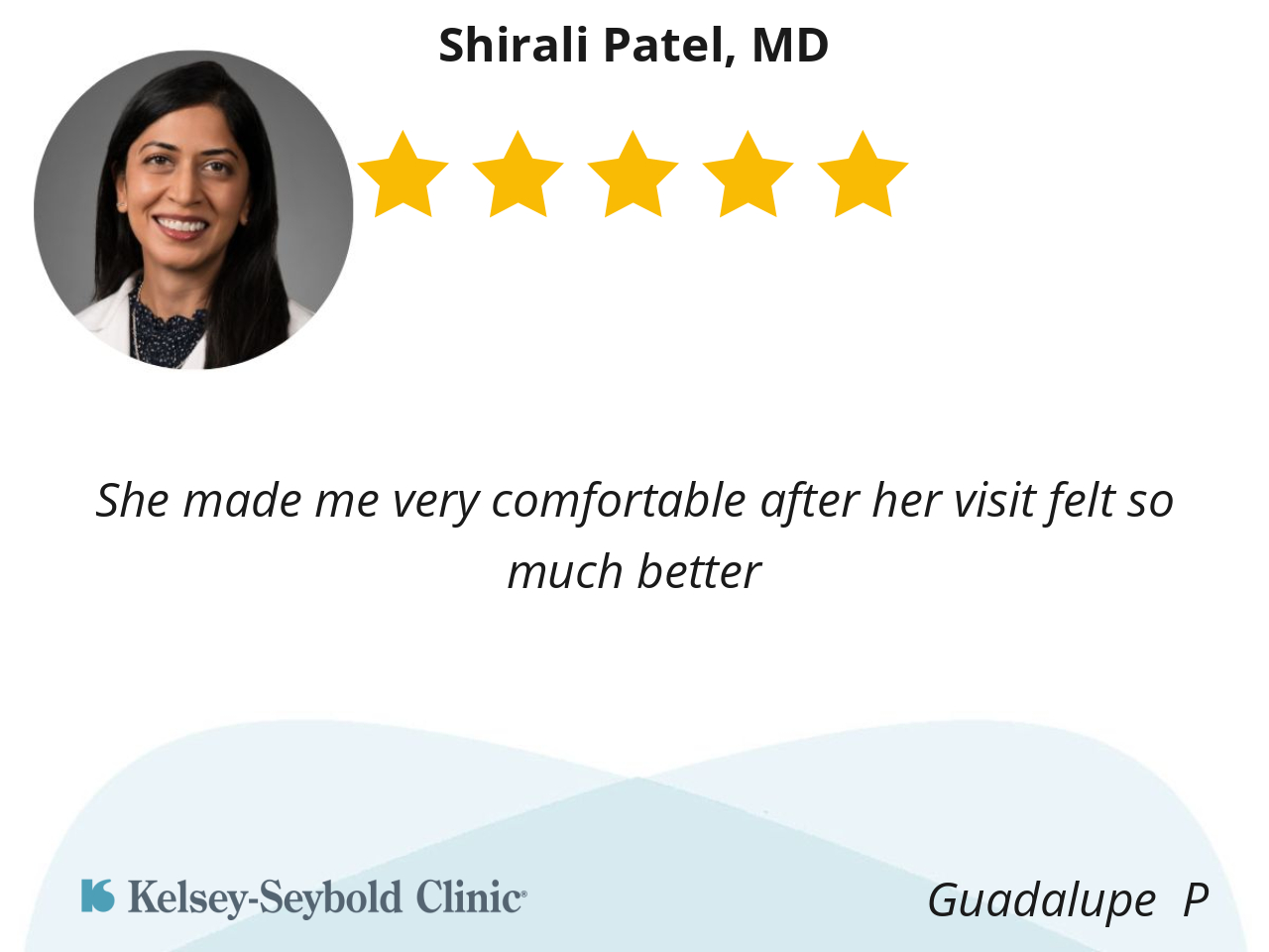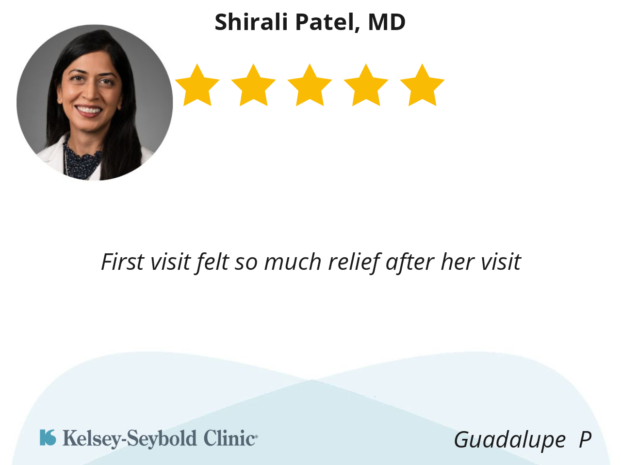 Her calm voice, she listen and ask questions and came up with a plan for my husband. He has vascular dementia and he doesn't talk much, we're working on a plan to work on his behavior. Thank you Dr Patel