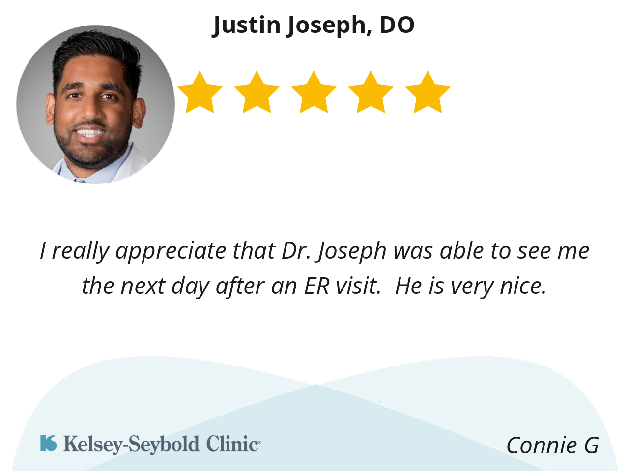 I really appreciate that Dr. Joseph was able to see me the next day after an ER visit. He is very nice.