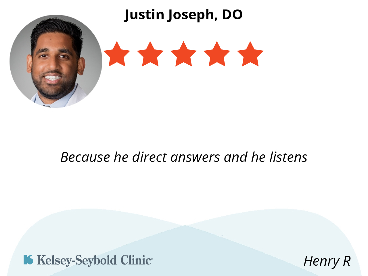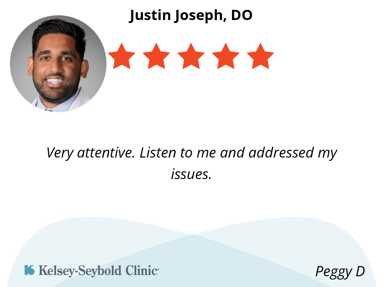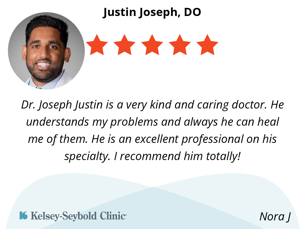 Dr. Joseph Justin is a very kind and caring doctor. He understands my problems and always he can heal me of them. He is an excellent professional on his specialty. I recommend him totally!