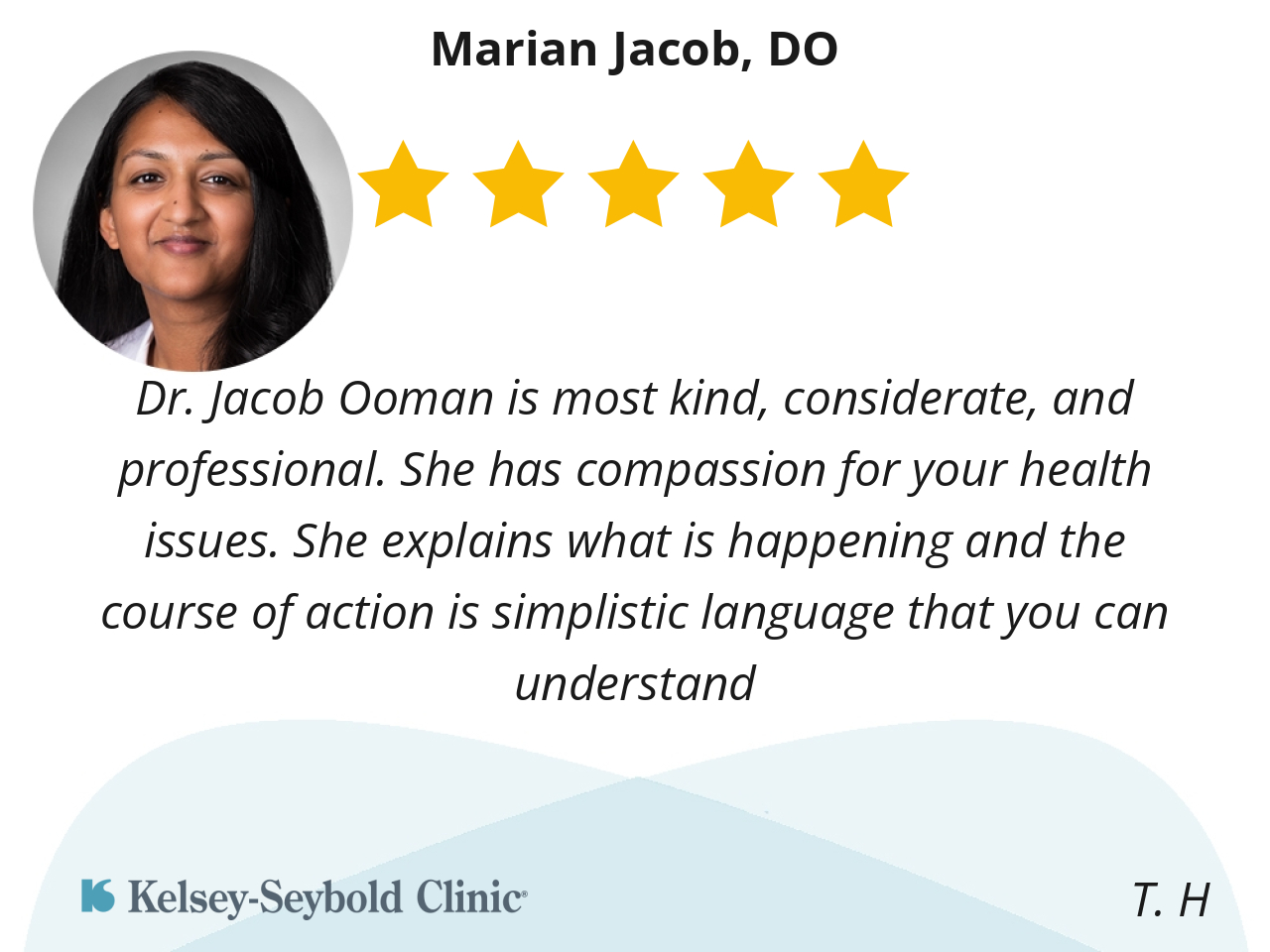 Dr. Jacob is knowledgeable, very kind and caring for patients