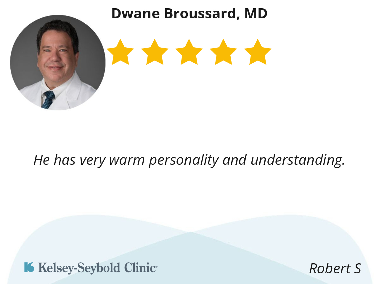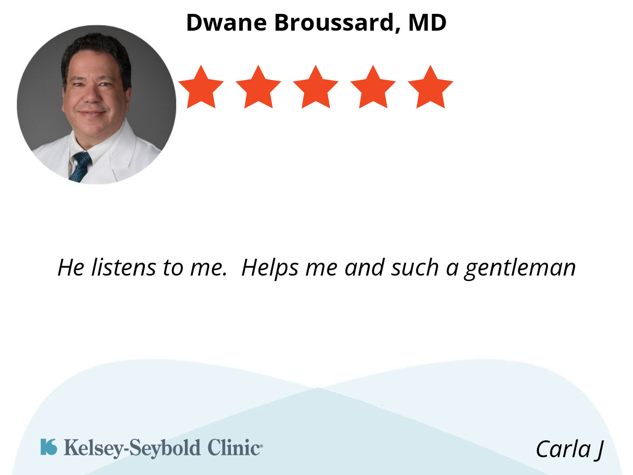 Dr. Broussard is friendly, kind and very thorough. He always asked probing questions regarding any health issues. I would recommend Dr. Broussard to anyone.