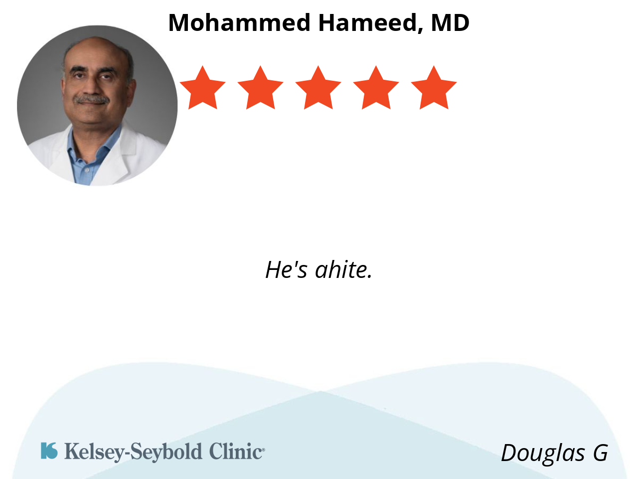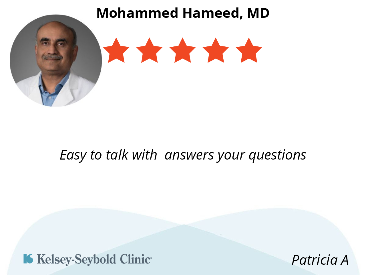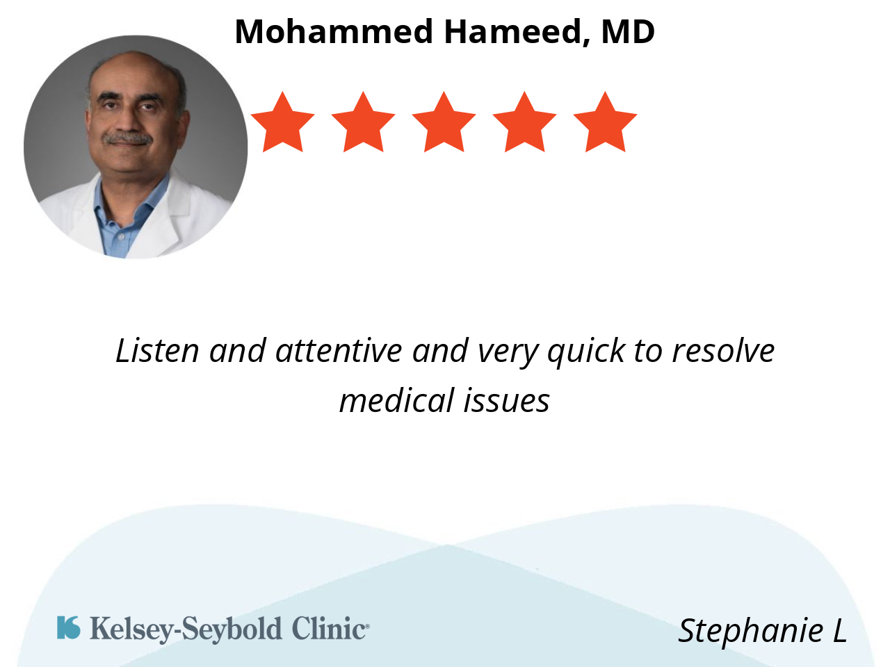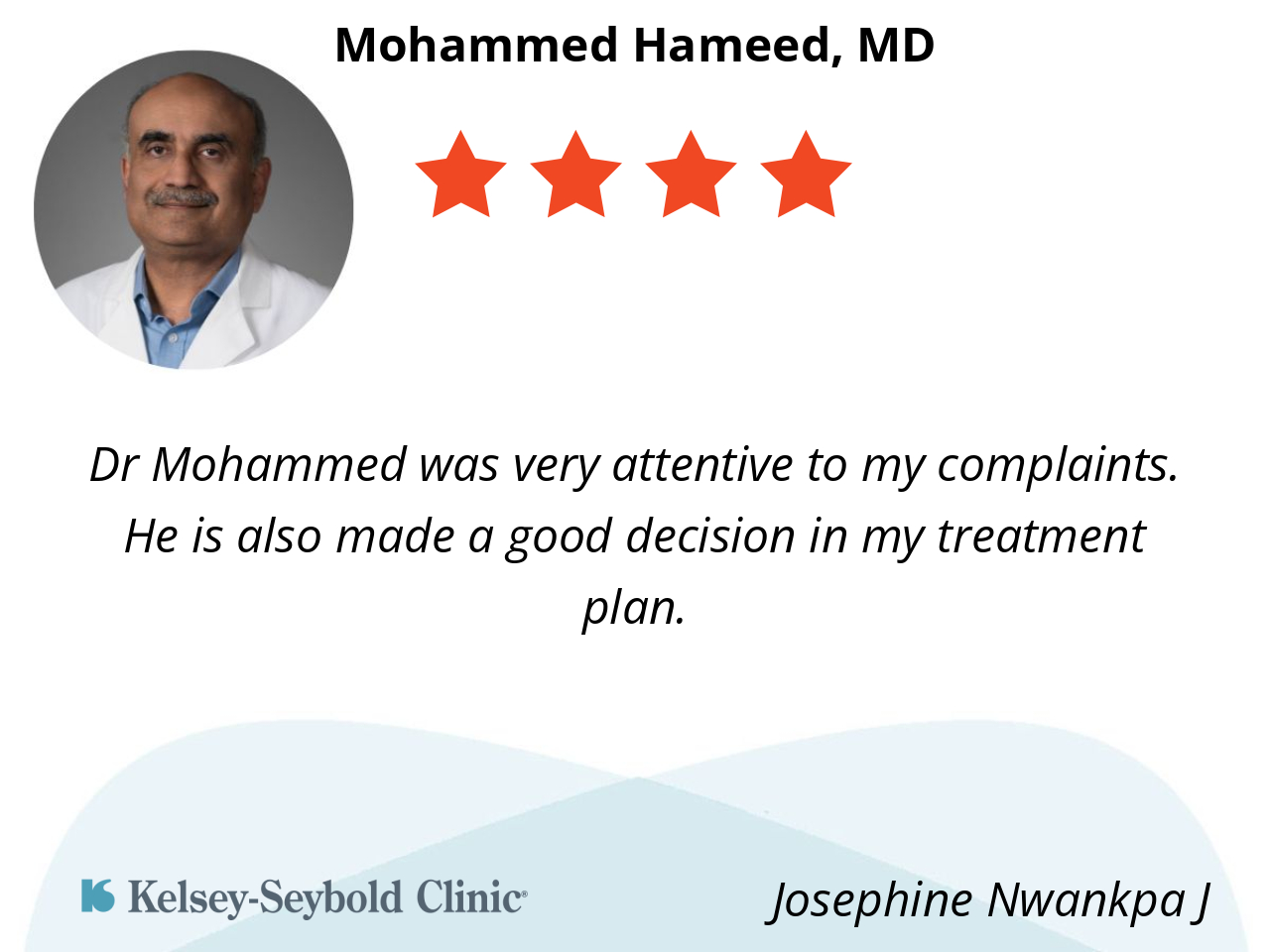 Dr Mohammed was very attentive to my complaints. He is also made a good decision in my treatment plan.