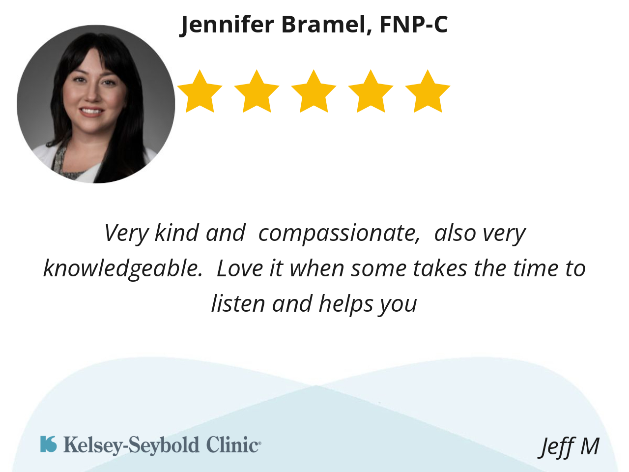 Jennifer was very thorough. She took her time with me. She was very easy to talk to. I left feeling pleased with my visit because she took the time to listen to me and discussed my treatment plan with genuine concern.