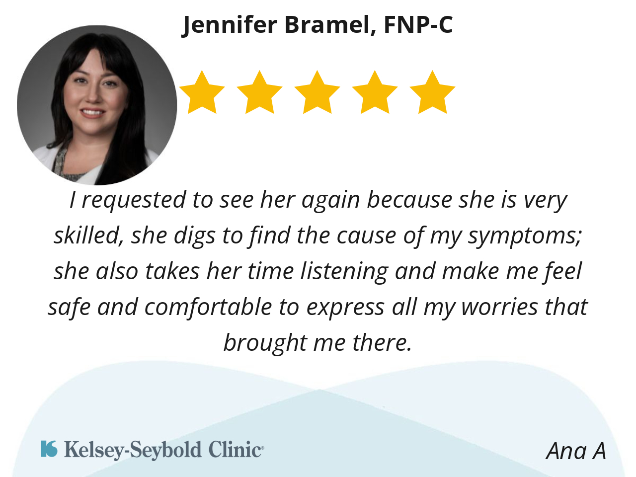 I requested to see her again because she is very skilled, she digs to find the cause of my symptoms; she also takes her time listening and make me feel safe and comfortable to express all my worries that brought me there.