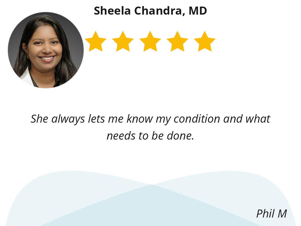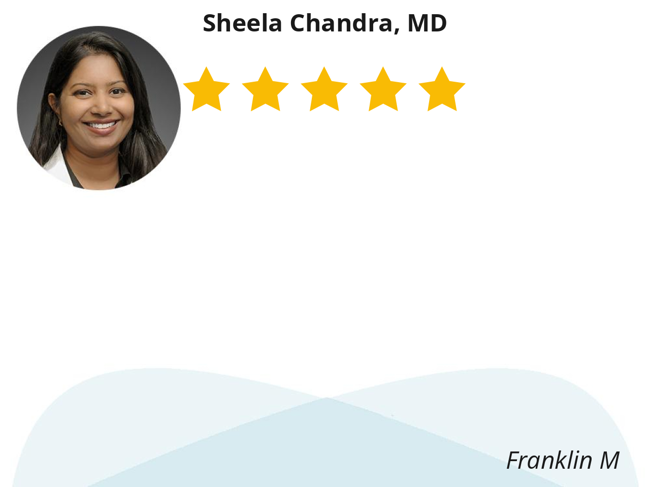 Doctor listened to me. Doctor explains in a way that I understood what my medical issues and treatment. Thank You Kelsey for Dr. Chandra.