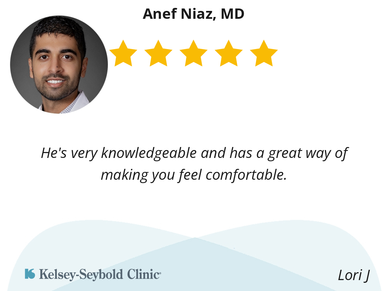 Very knowledgeable, he knows my health history. Listens well. Gives sound advise.
