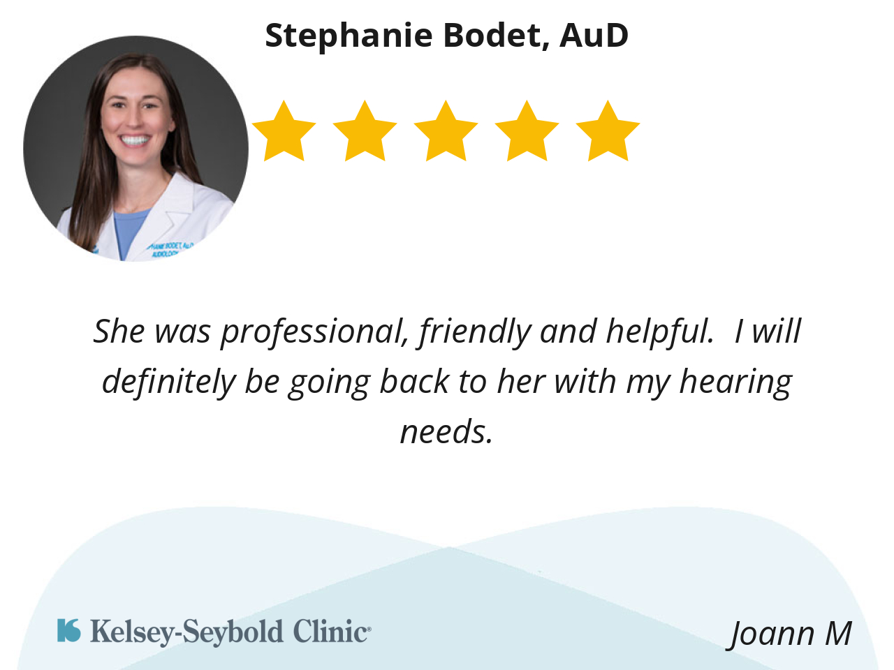 She was professional, friendly and helpful. I will definitely be going back to her with my hearing needs.