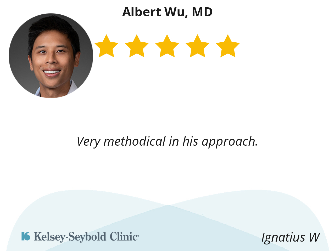 Dr Wu was very thorough. He listened to my concerns and took time to explain different conditions that could be causing my symptoms. He also explained his specialty and advised that if blood work results showed concerns, he would refer me to Rheumatology, which he did. I appreciate that he posted a comment on My Kelsey Online the very next day enabling me to schedule the next step. The only reason I did not rate 5 stars is that I had to wait for some time in the exam room. He did apologize for the delay and thanked me for my patience.