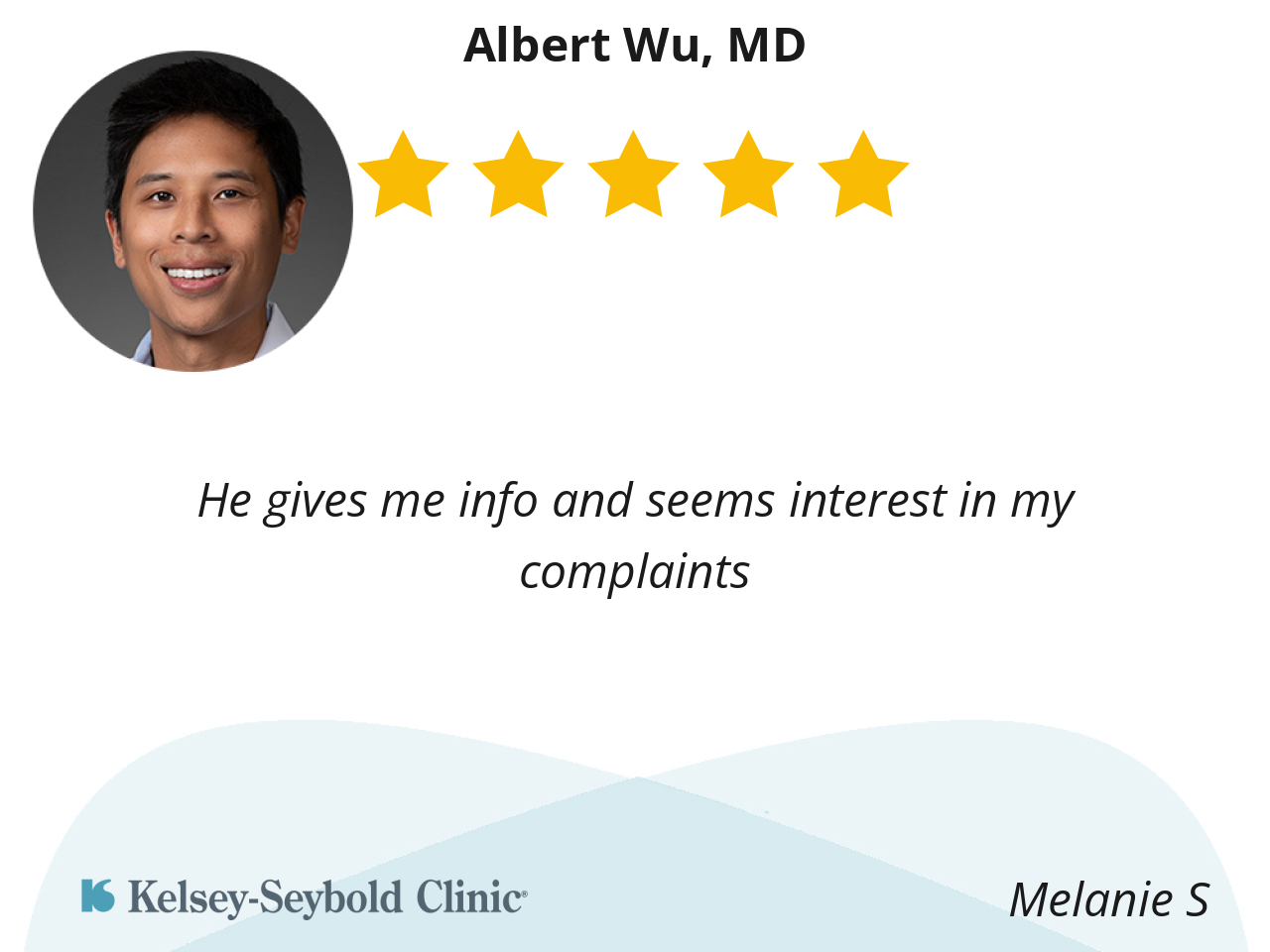 His bedside manner was amazing too. I felt super comfortable with Dr Wu.