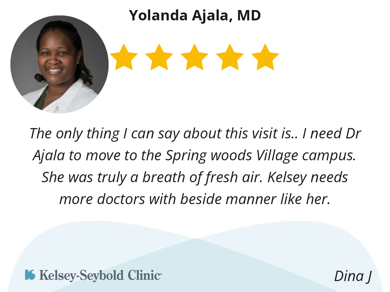 The only thing I can say about this visit is.. I need Dr Ajala to move to the Spring woods Village campus. She was truly a breath of fresh air. Kelsey needs more doctors with beside manner like her.