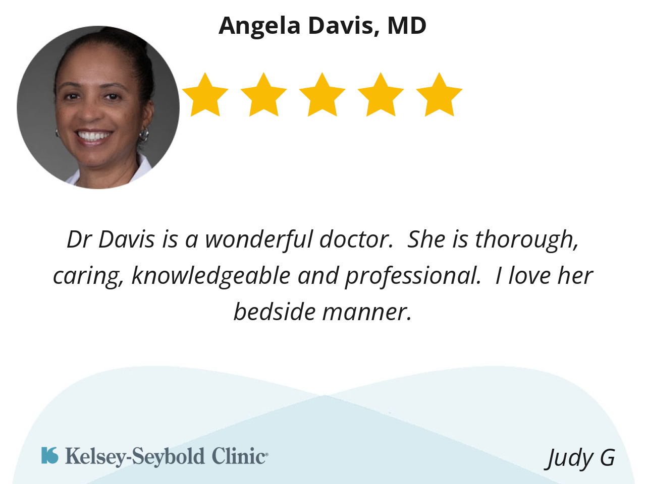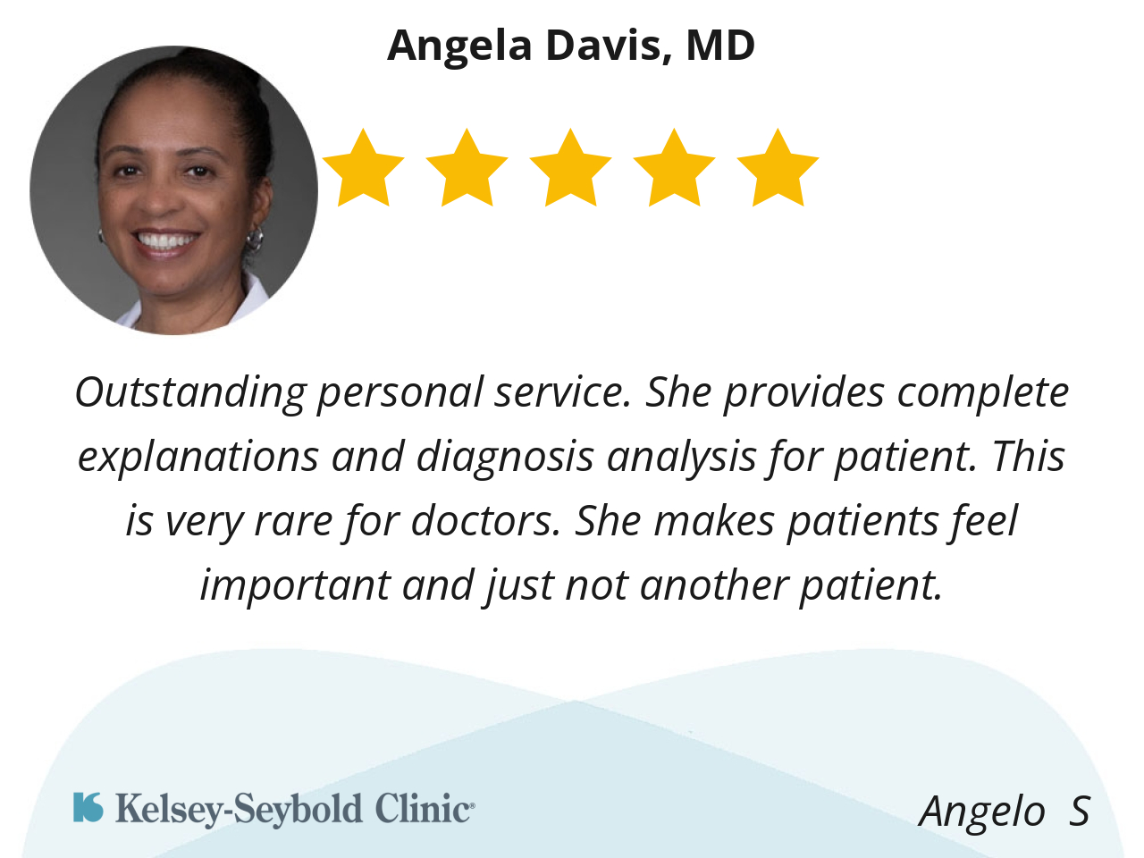 I like Dr Davis very much. She's very thorough when checking my skin from head to toe. Literally. She's done a lot of procedures on my skin and I trust her very much going forward. Thank you Dr Davis and Kelsey-Seybold.