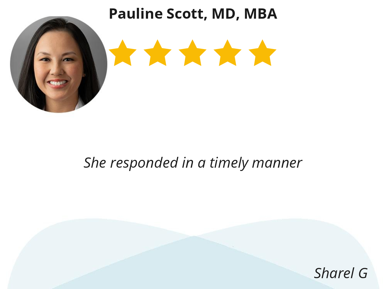 Dr. Scott is a perfect combination of professional and personable. I trust her knowledge and also appreciate her friendliness. I highly recommend her.