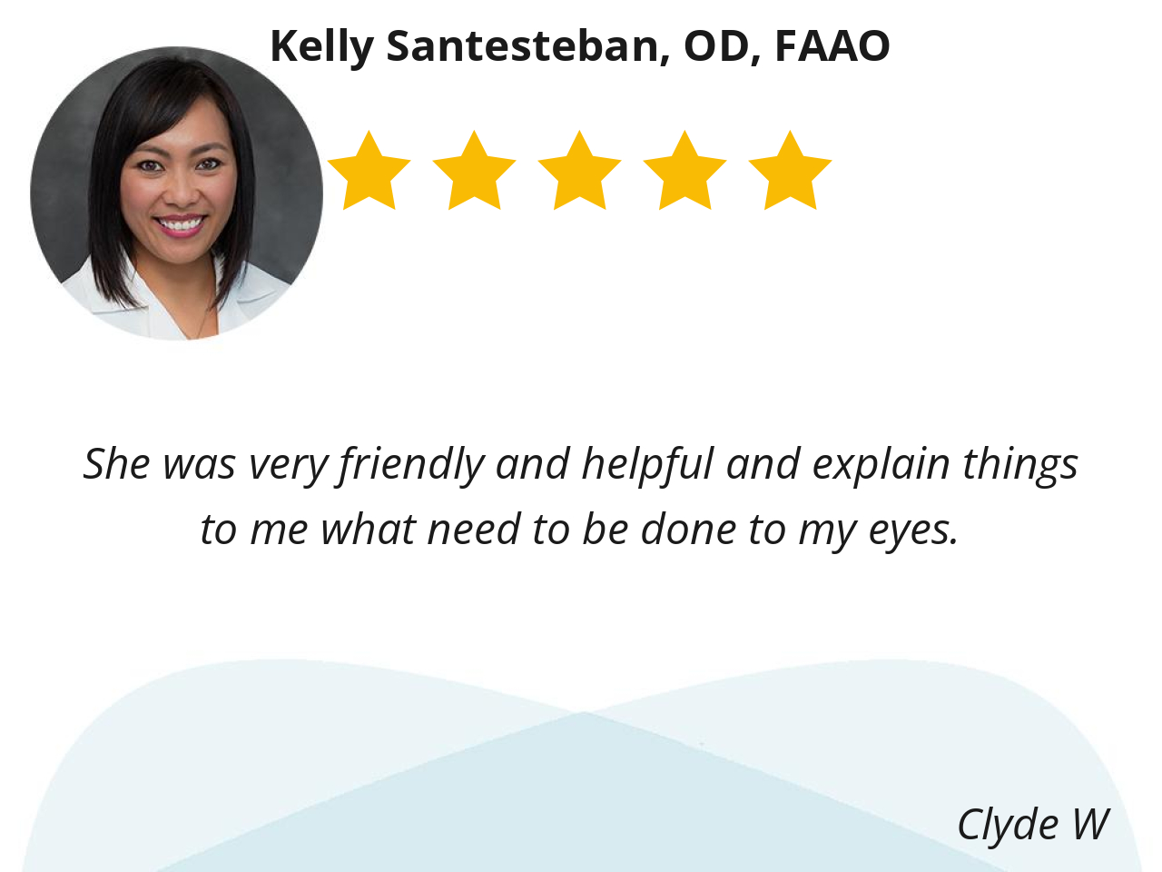 She was very friendly and helpful and explain things to me what need to be done to my eyes.