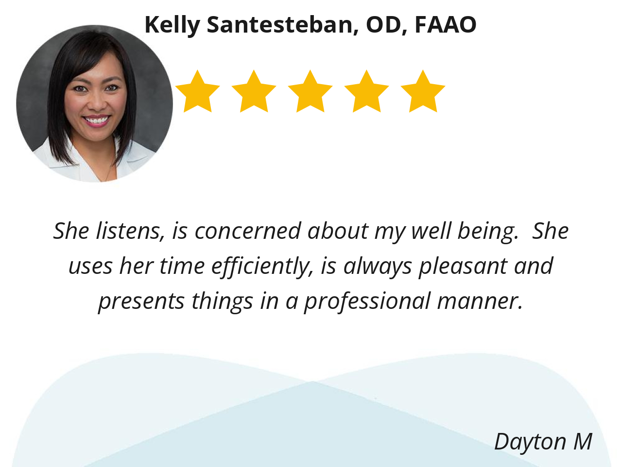 Dr Santesteban did a very thorough eye examination. She takes her time explaining everything to me about how my vision eyesight changes, very patient, very sensitive and answer questions about my concerns. Dr Santesteban is awesome and I am very satisfied. Thank you.