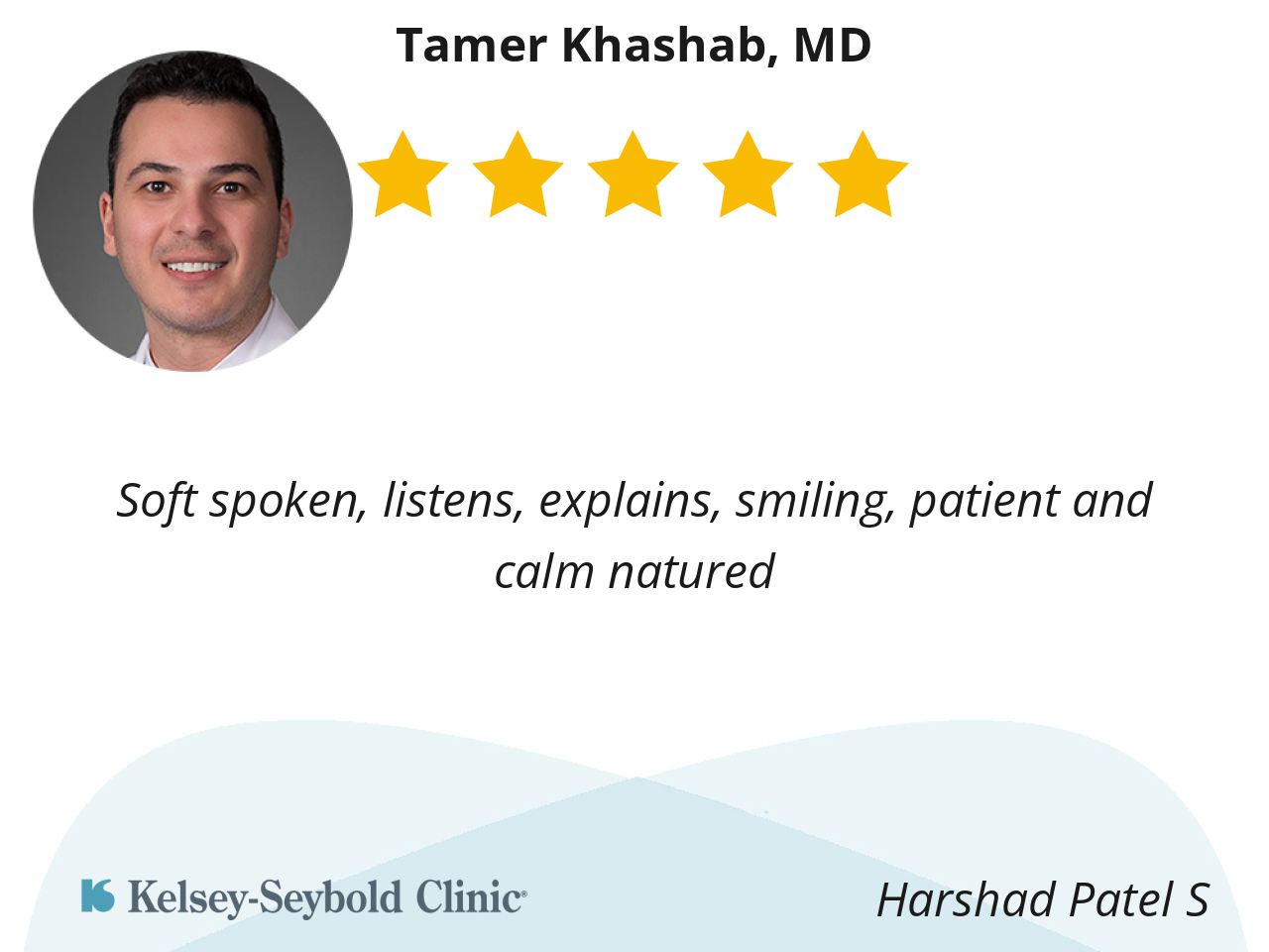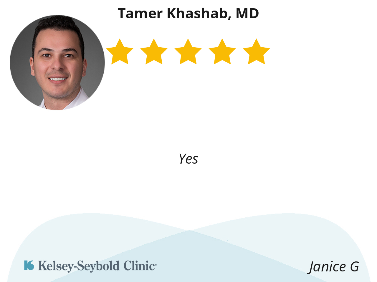 Dr. Khashab is very caring and always makes sure he has answered all my questions.