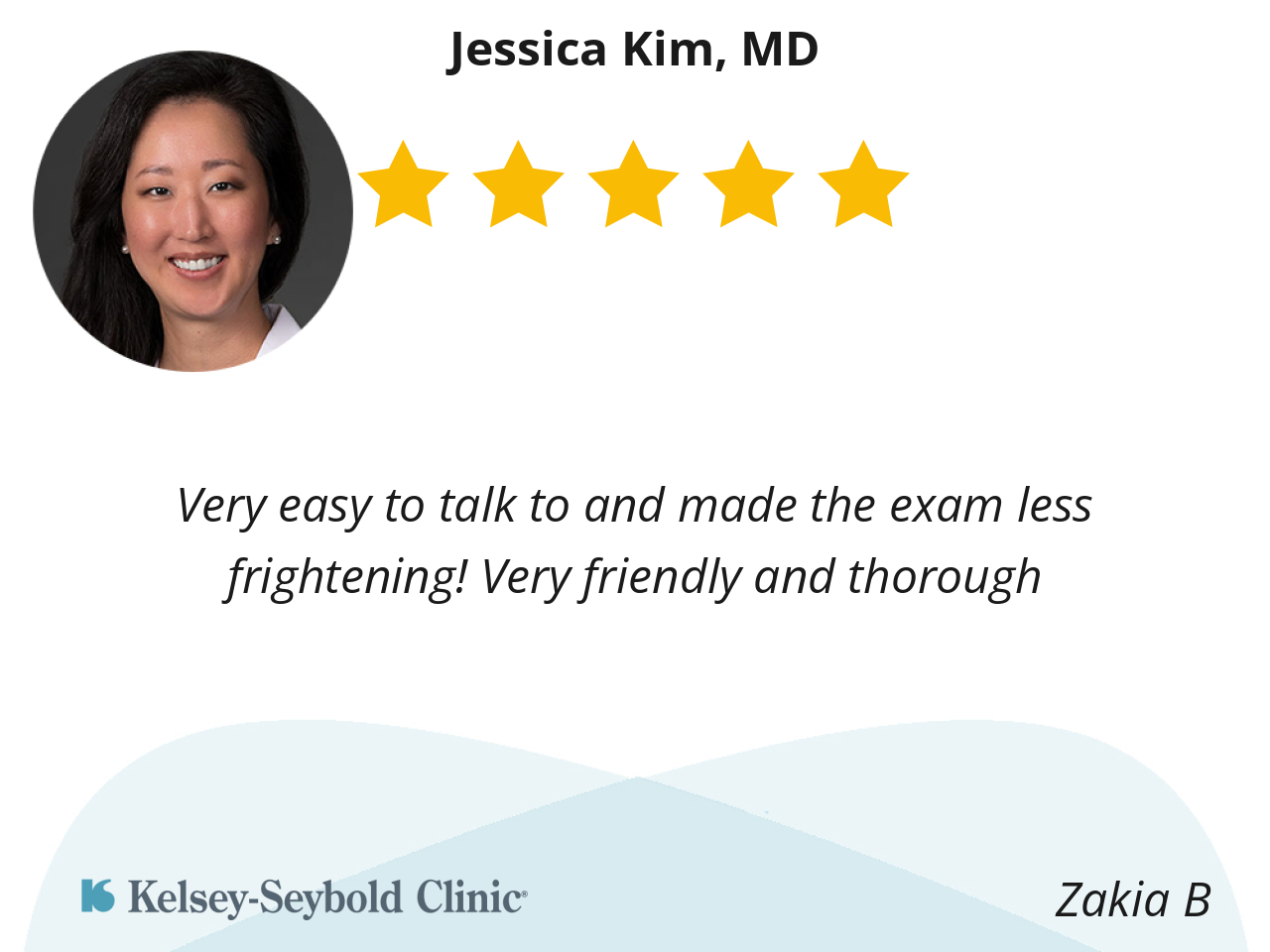 MD Jessica Kim is amazing. All around. Bedside manners, gentle, informative, and understanding. Glad to have found a great OBGYN.