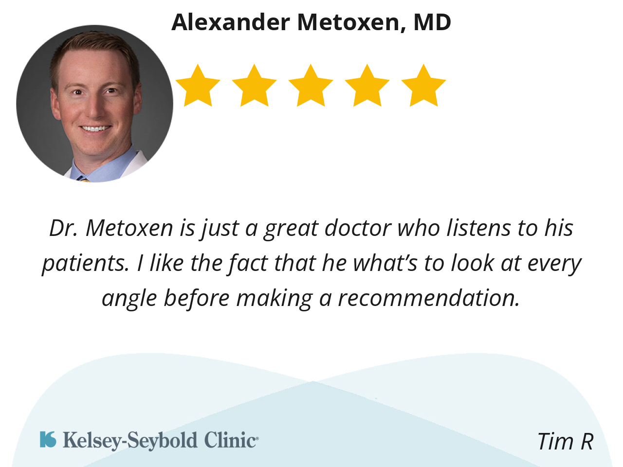 Dr. Metoxen is just a great doctor who listens to his patients. I like the fact that he what’s to look at every angle before making a recommendation.