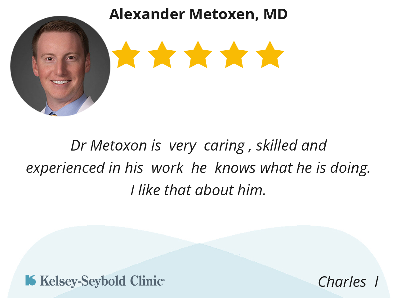 I trust him with my life. Dr Metoxen explained what he was going to do and did just what he said. He knows what he need to do and do it. He's very good at what he does. My knee looks great after the surgery. All I need now is to get well.