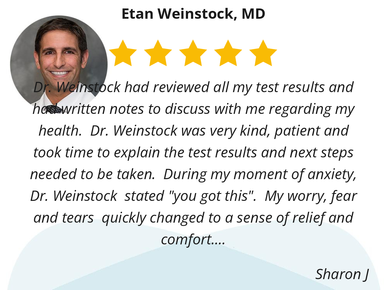 Dr. Weinstock stated "you got this". My worry, fear and tears quickly changed to a sense of relief and comfort.