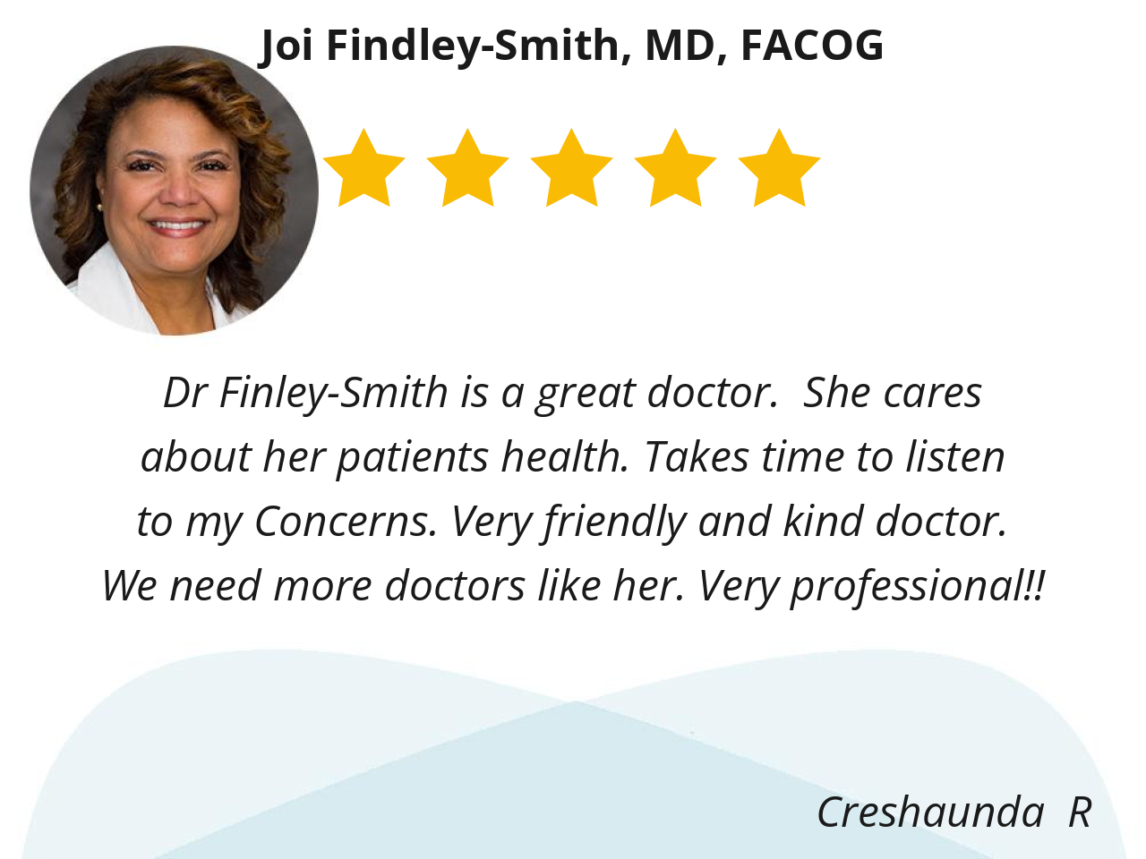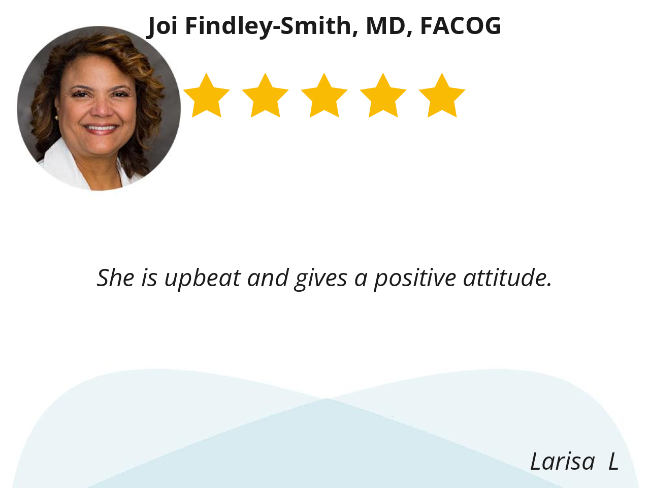 I love Dr. Joi Findley-Smith. She made me feel so comfortable and she was very thorough. She actually listened to me! 100% recommend.