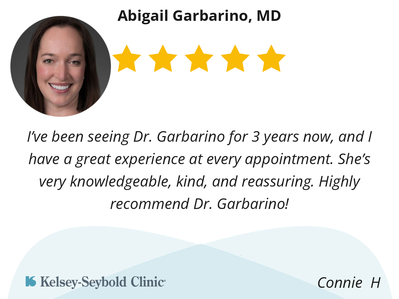 I’ve been seeing Dr. Garbarino for 3 years now, and I have a great experience at every appointment. She’s very knowledgeable, kind, and reassuring. Highly recommend Dr. Garbarino!