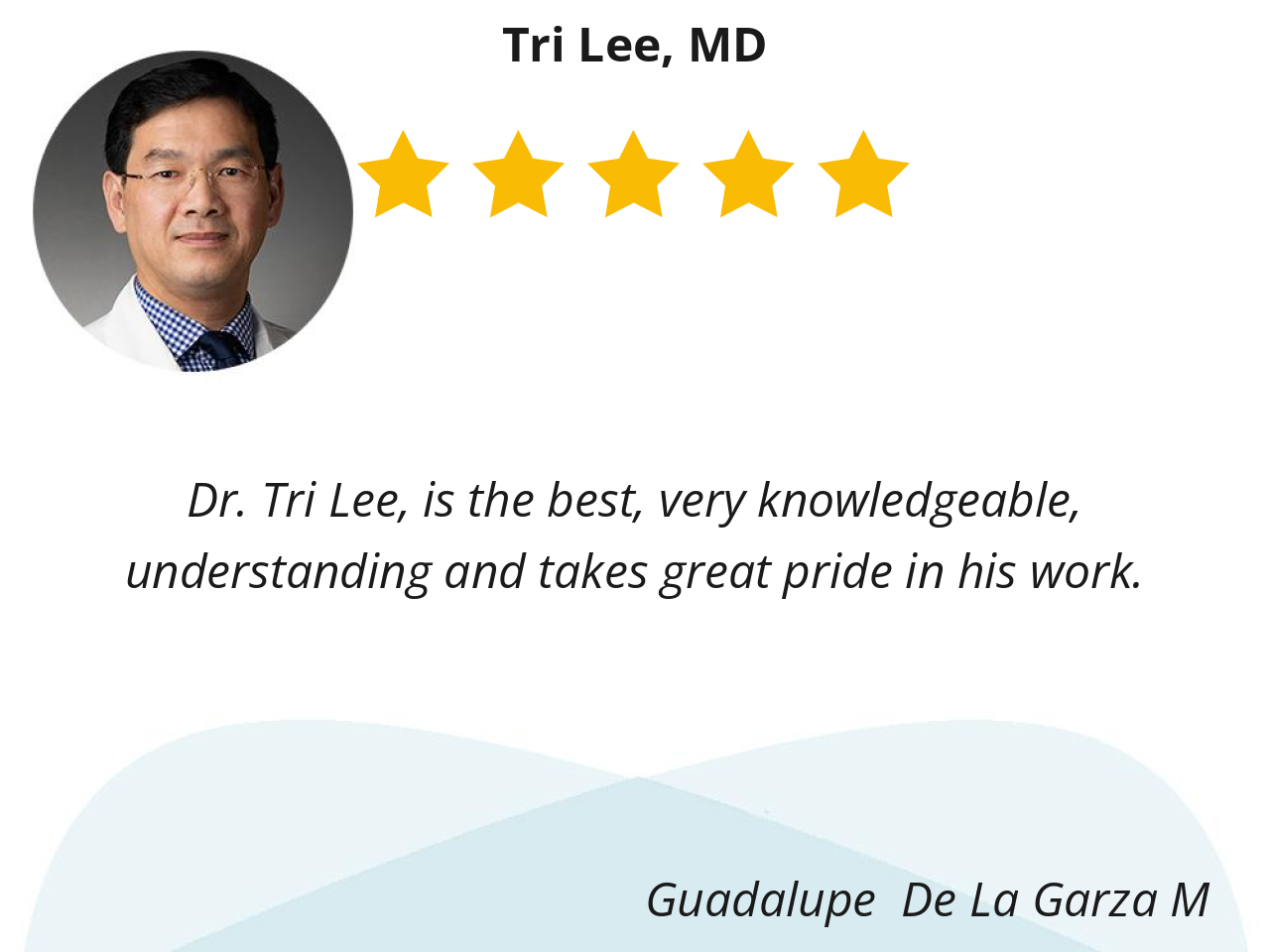 Dr. Tri Lee, is the best, very knowledgeable, understanding and takes great pride in his work.