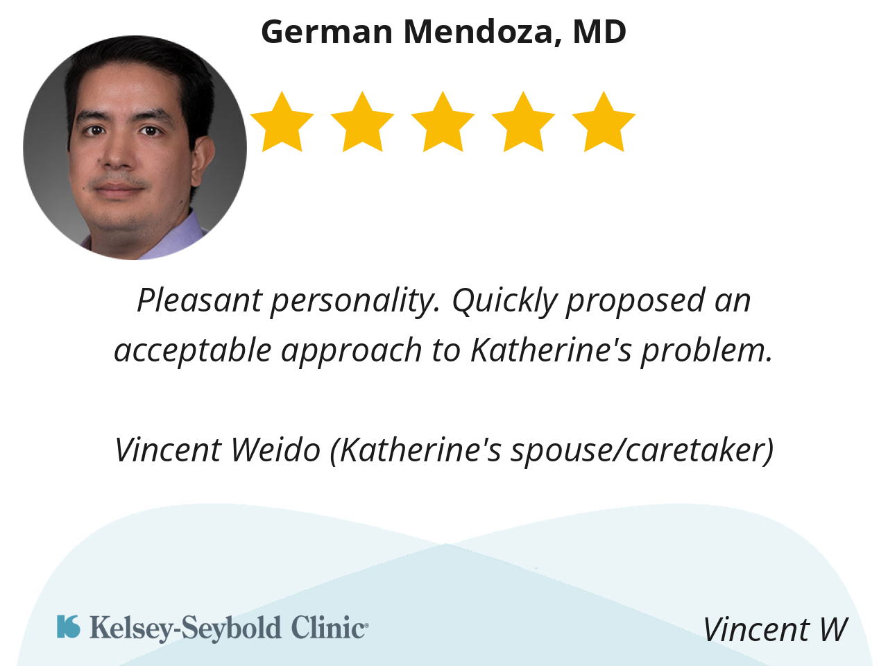Dr. Mendoza has a great bed side manner. He explains everything thoroughly.