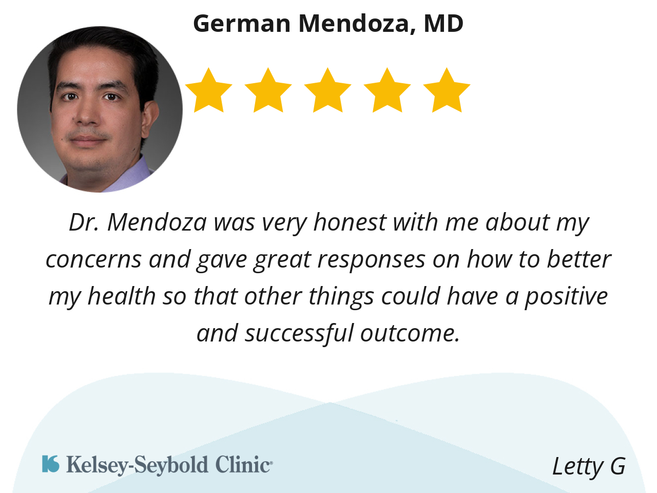 Dr. Mendoza was very honest with me about my concerns and gave great responses on how to better my health so that other things could have a positive and successful outcome.