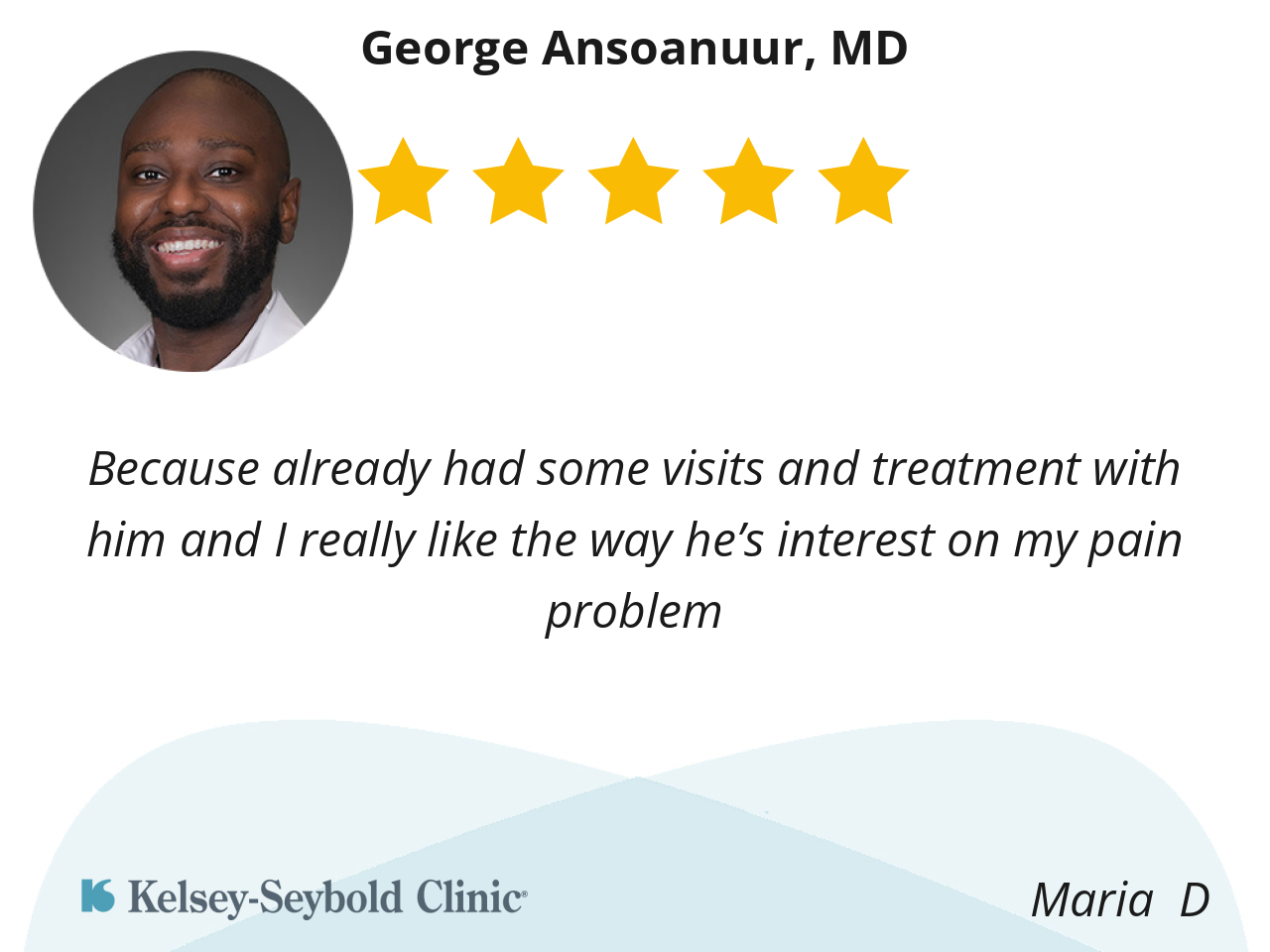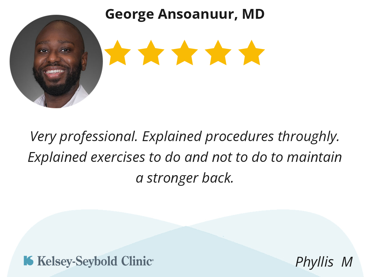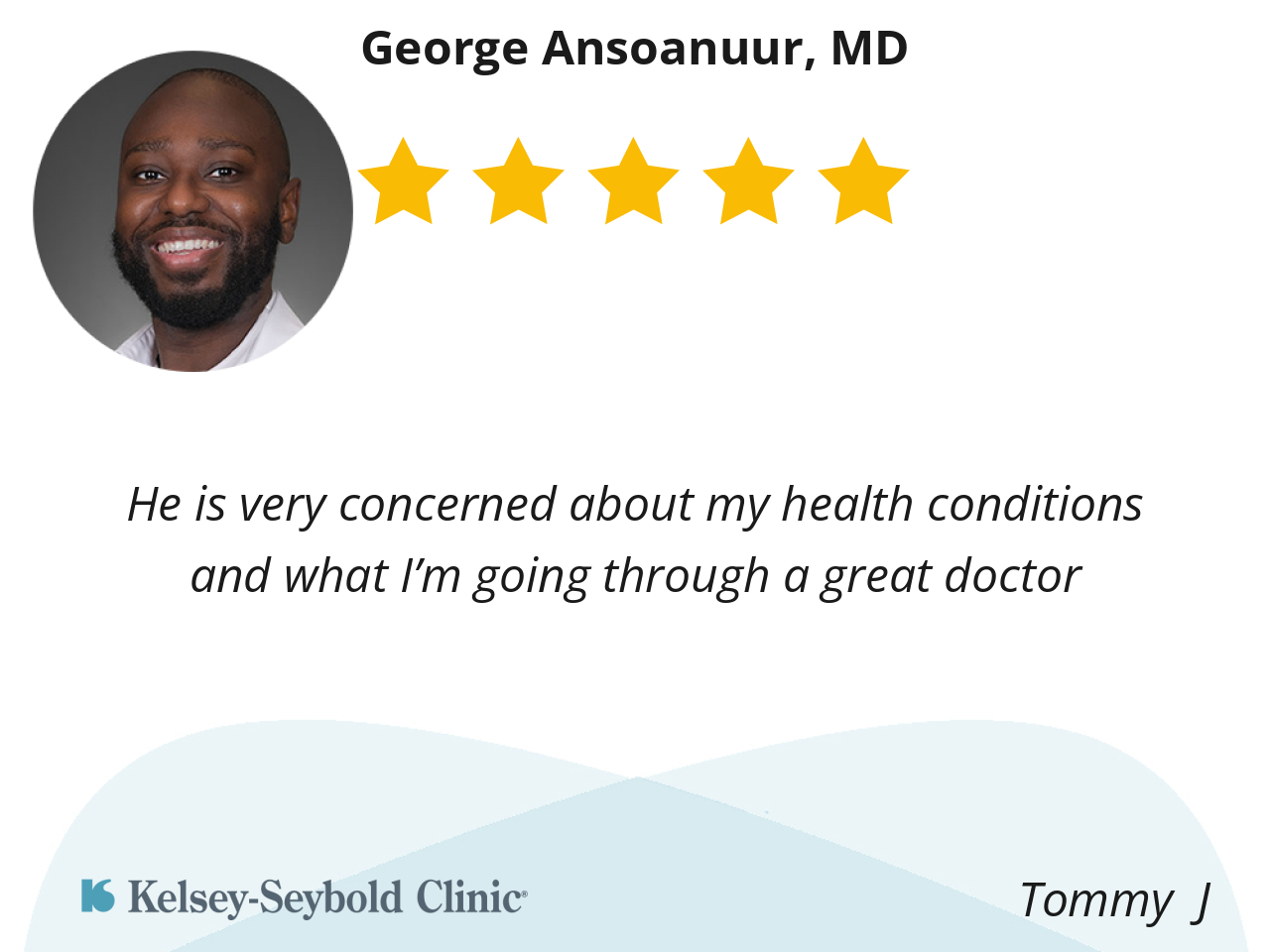 I like Doctor George Ansoanuur because he knows what he's doing, he listens to what you're saying and he takes good care of me and what's going on with me