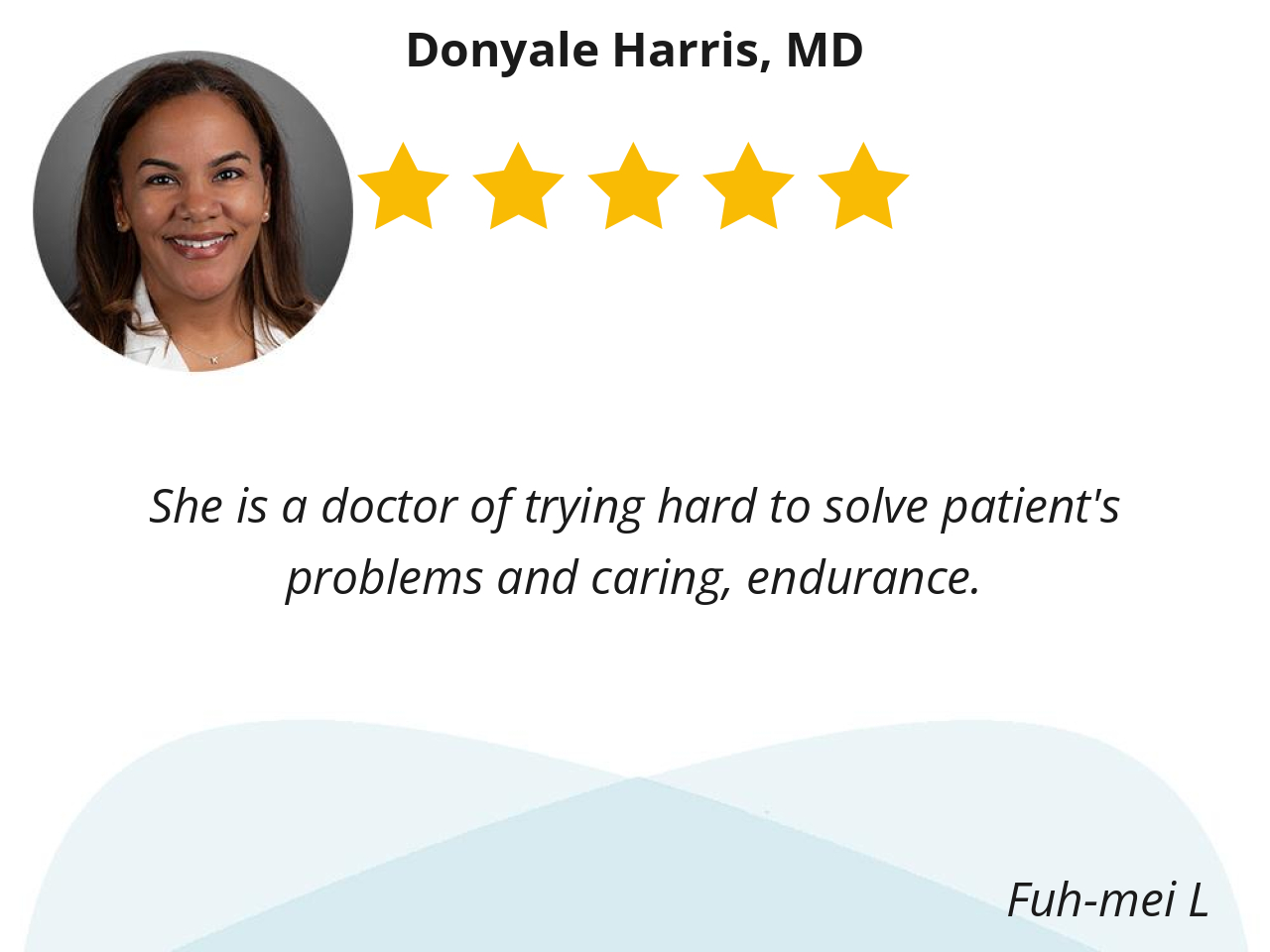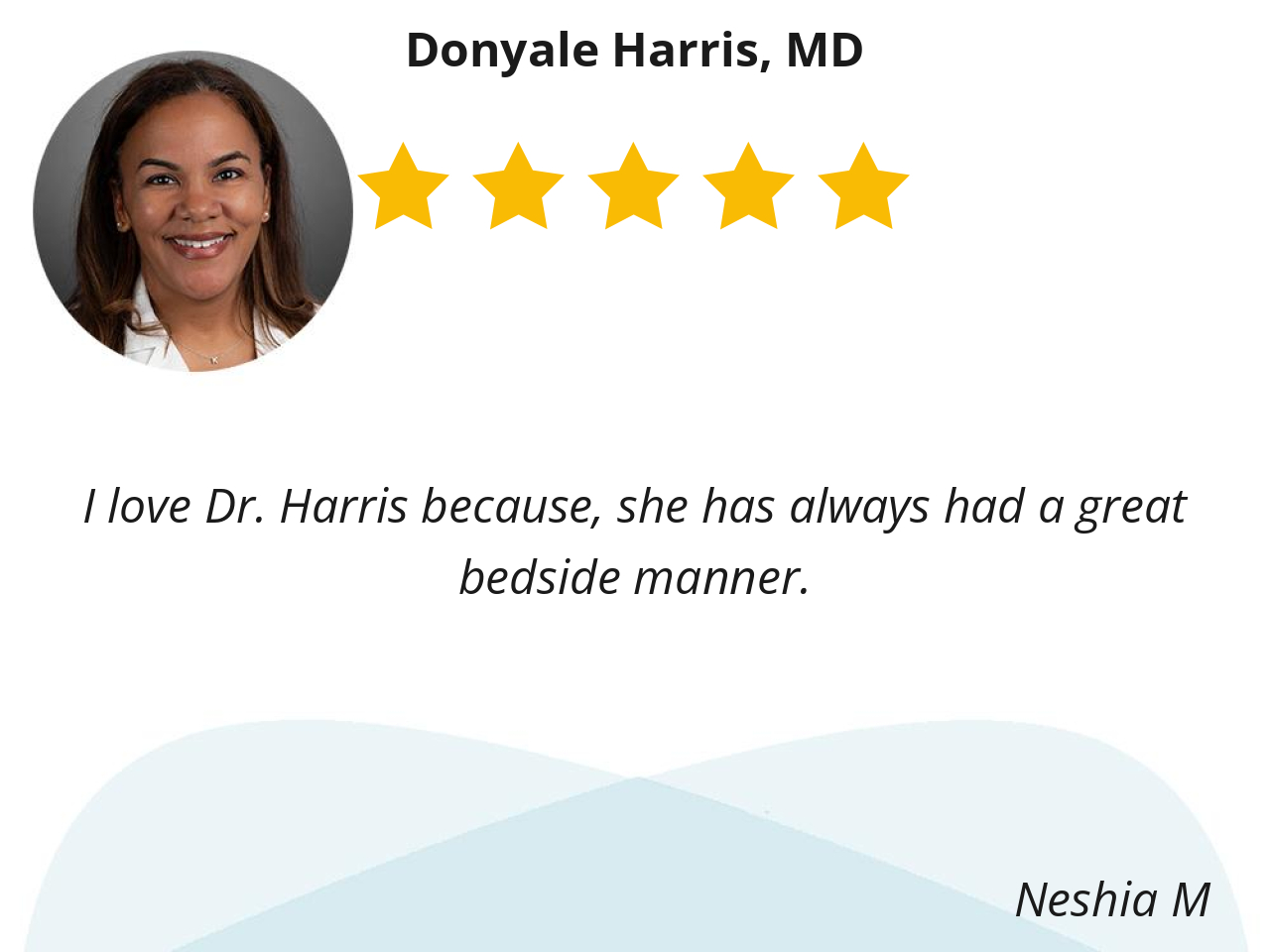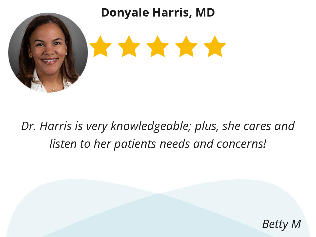 Dr. Harris cares about her patients and me as a person she’s closing a personal she’s been my doctor for a long time. She care if she takes care of me as a senior citizen keep up the good work.