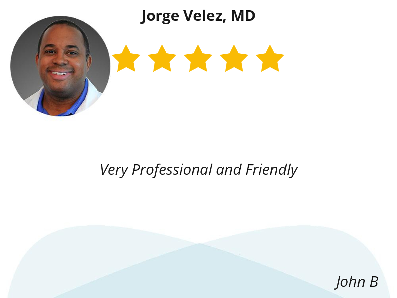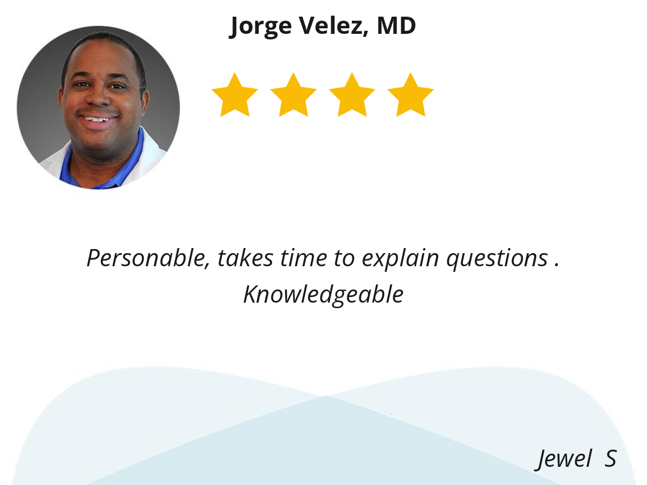 I Highly Recommend Dr. Velez to anyone. My husband met Dr Velez on my first and second visit and said, he really likes this doctor.