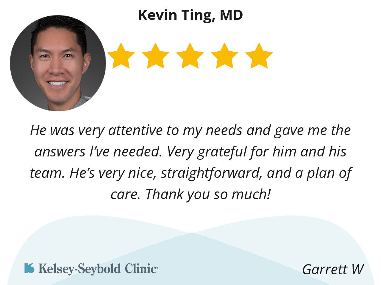 He was very attentive to my needs and gave me the answers I’ve needed. Very grateful for him and his team. He’s very nice, straightforward, and a plan of care. Thank you so much!