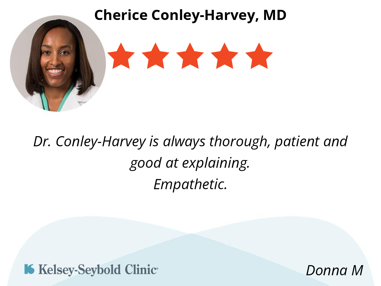 Dr. Conley-Harvey is always thorough, patient and good at explaining.