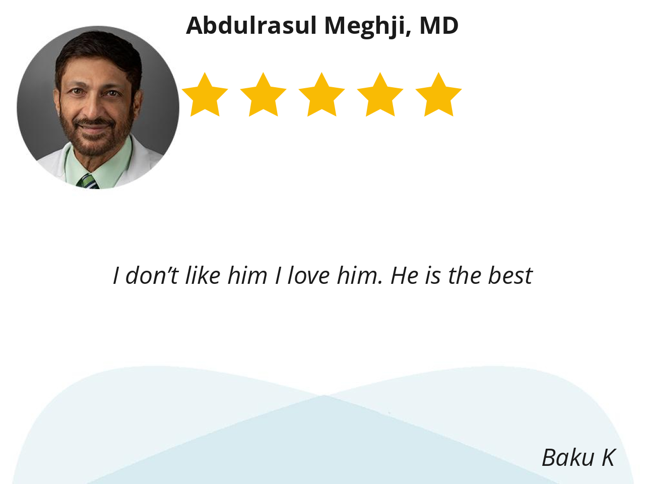 Dr. Meghji is very knowledgeable and thorough. He does not spend an ordinate amount of time on small talk unless it is patient related.