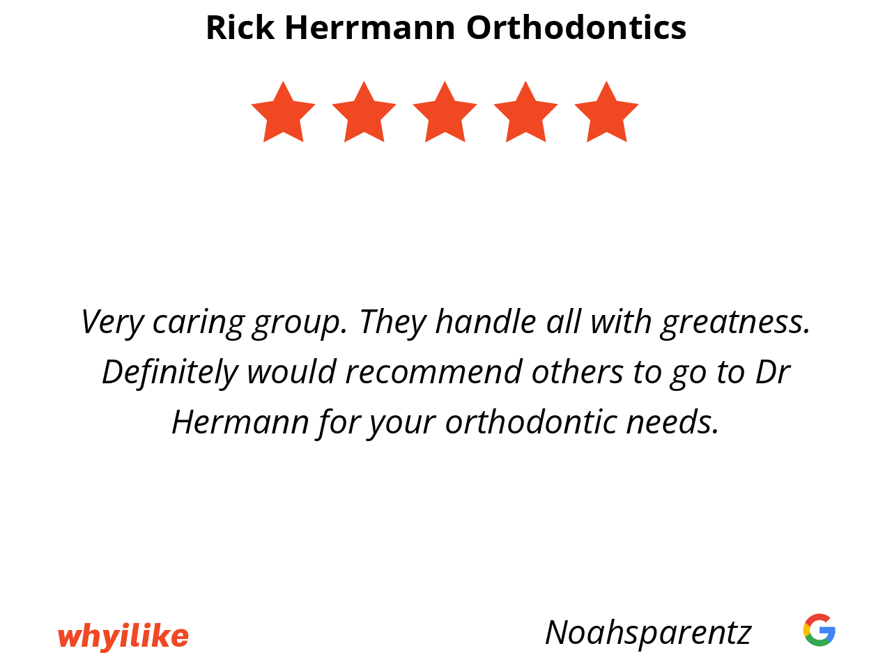 We always have a great experience at their office. All the staff is super friendly and they make sure both my kiddos are comfortable with what is going on. They even went above and beyond when my son got hurt, he lost of few brackets and they sent him a get well card and a little gift with it. I would deffinitly recommend Rick Herrmann to anyone looking for an orthodontist!!