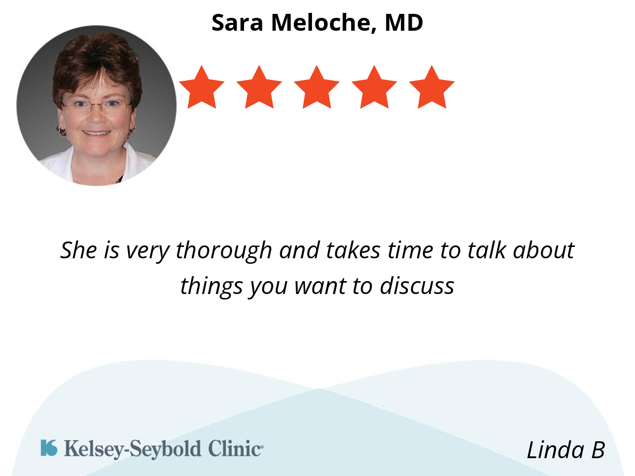 She’s always thorough with her examination and shows a sincere interest in my care