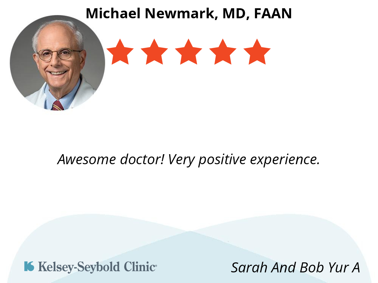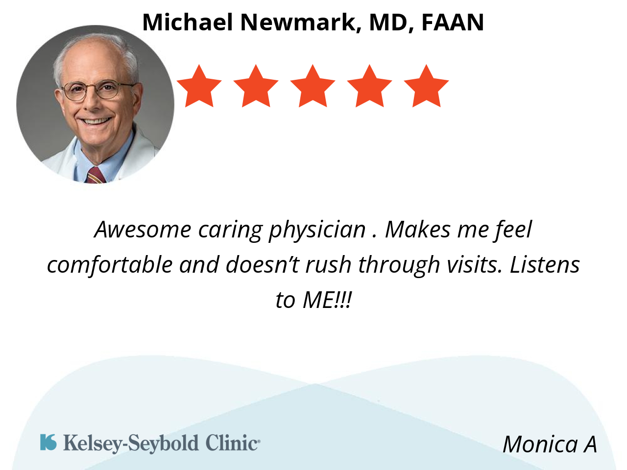 This was my first visit with Dr. Newmark, but I gave him five stars because he made a great first impression. He listened carefully, explained things clearly, and made me feel comfortable and confident in his care.