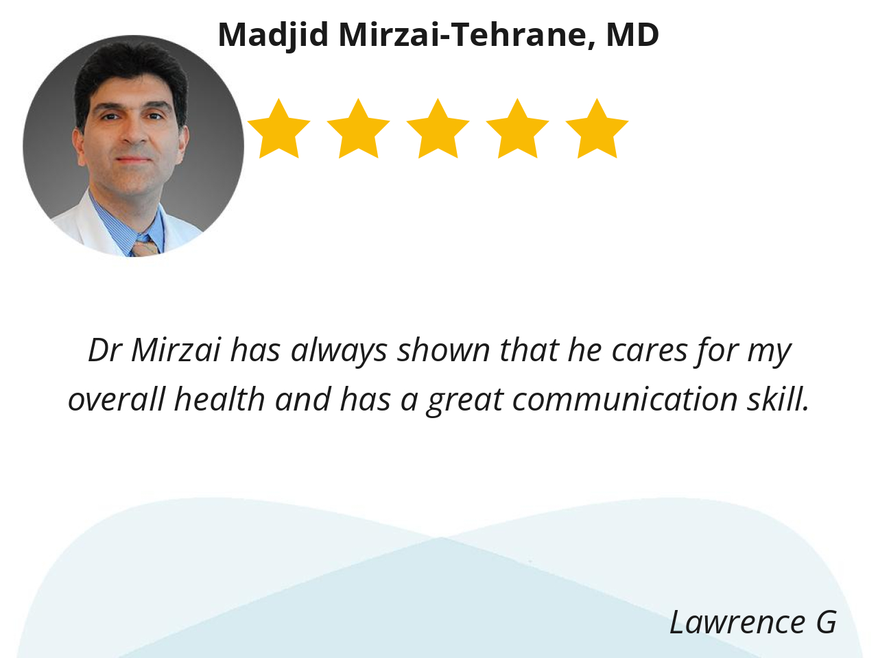 Dr Mirzai is consistently friendly, professional, and very up to date on the latest heart-related issues.