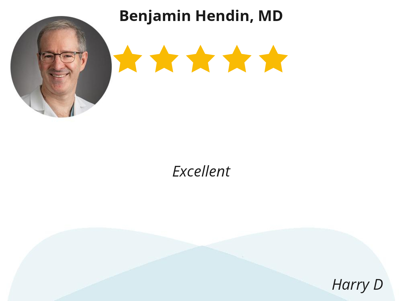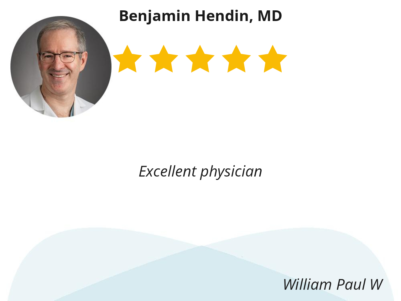 Dr. Hendin is an excellent physician. He listens and explains. While some physicians are in a rush, he takes the time to thoroughly explain and discuss all concerns. I have absolute trust in Dr. Hendin.