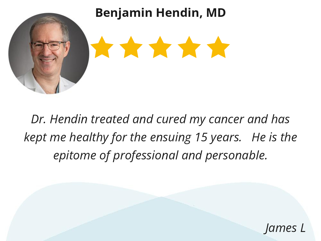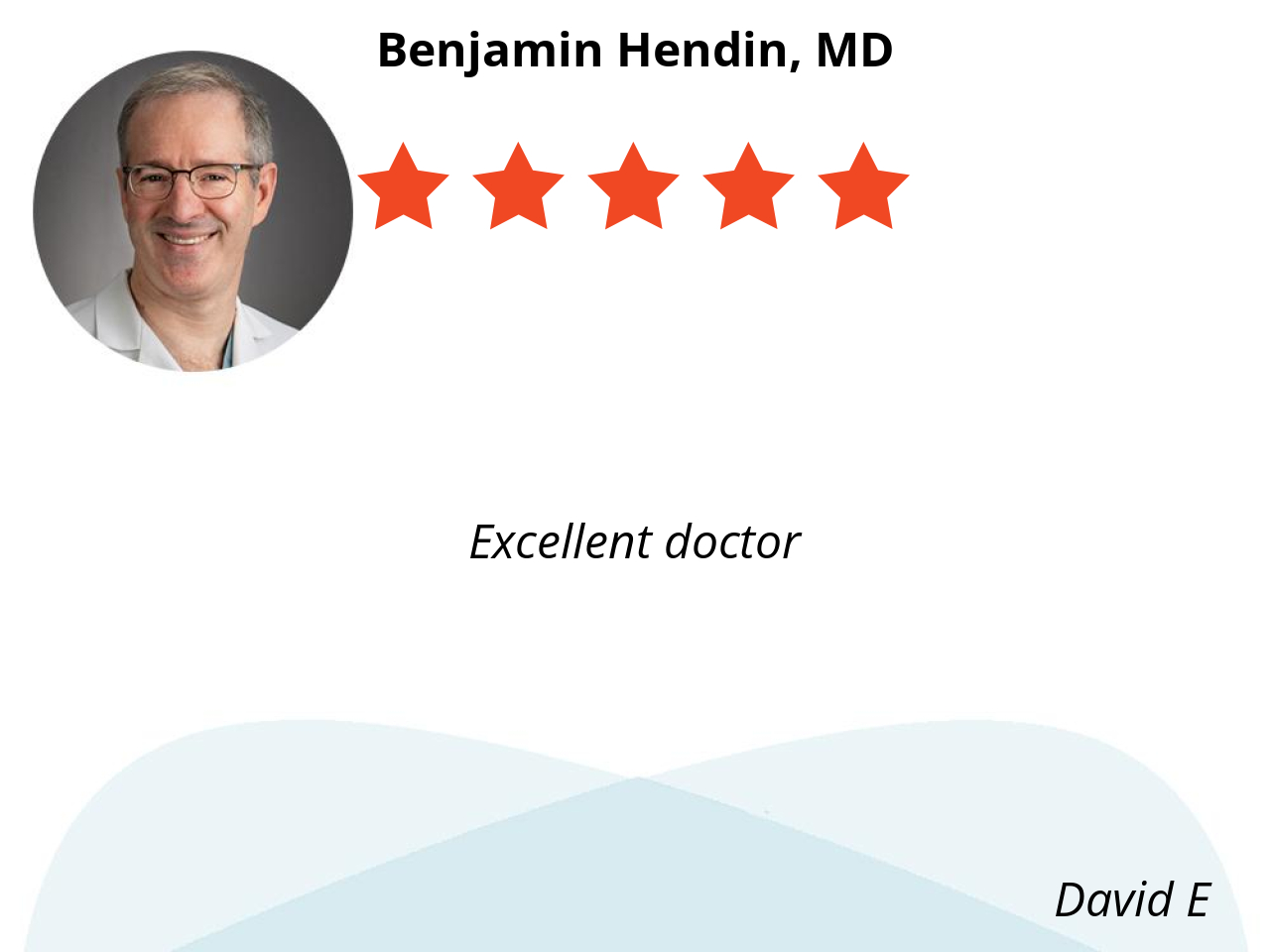 Dr. Hendin treated and cured my cancer and has kept me healthy for the ensuing 15 years. He is the epitome of professional and personable.