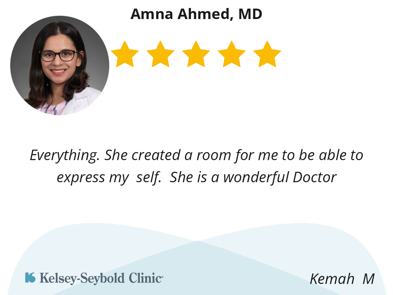 Check-in was super simple and easy. The front office staff were friendly and efficient and Dr. Ahmed was extremely helpful, informative, and clear in her communication. She answered all of my questions and did a wonderful job of putting me at ease. She even helped me schedule another appointment to make sure I was taken care of. Thank you Kelsey team!