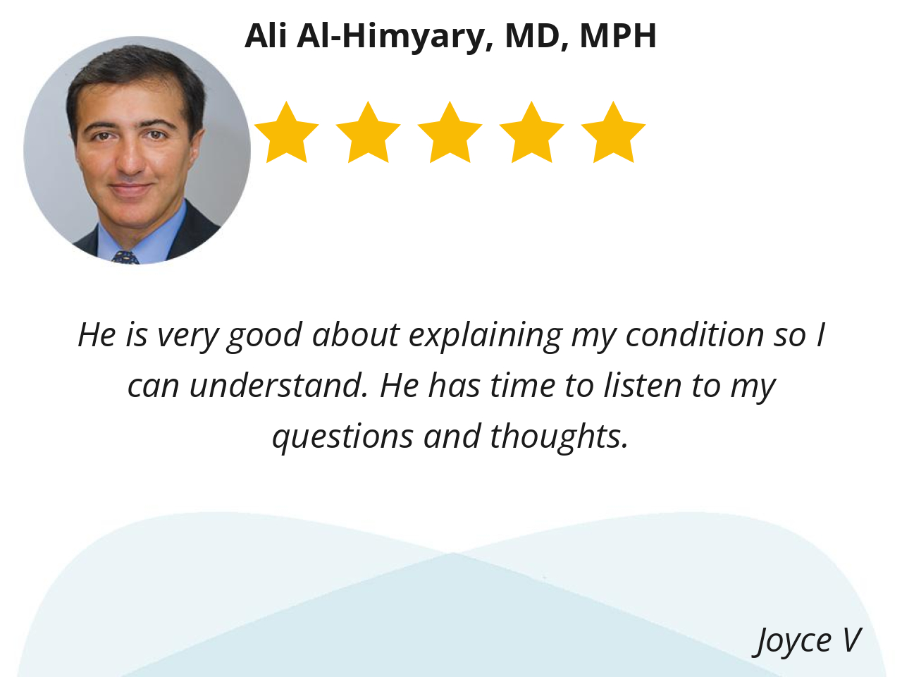 Dr.Himyary is a great doctor. He seems to be on top of his profession as to what to do with my health problems. He also shows compassion and caring.