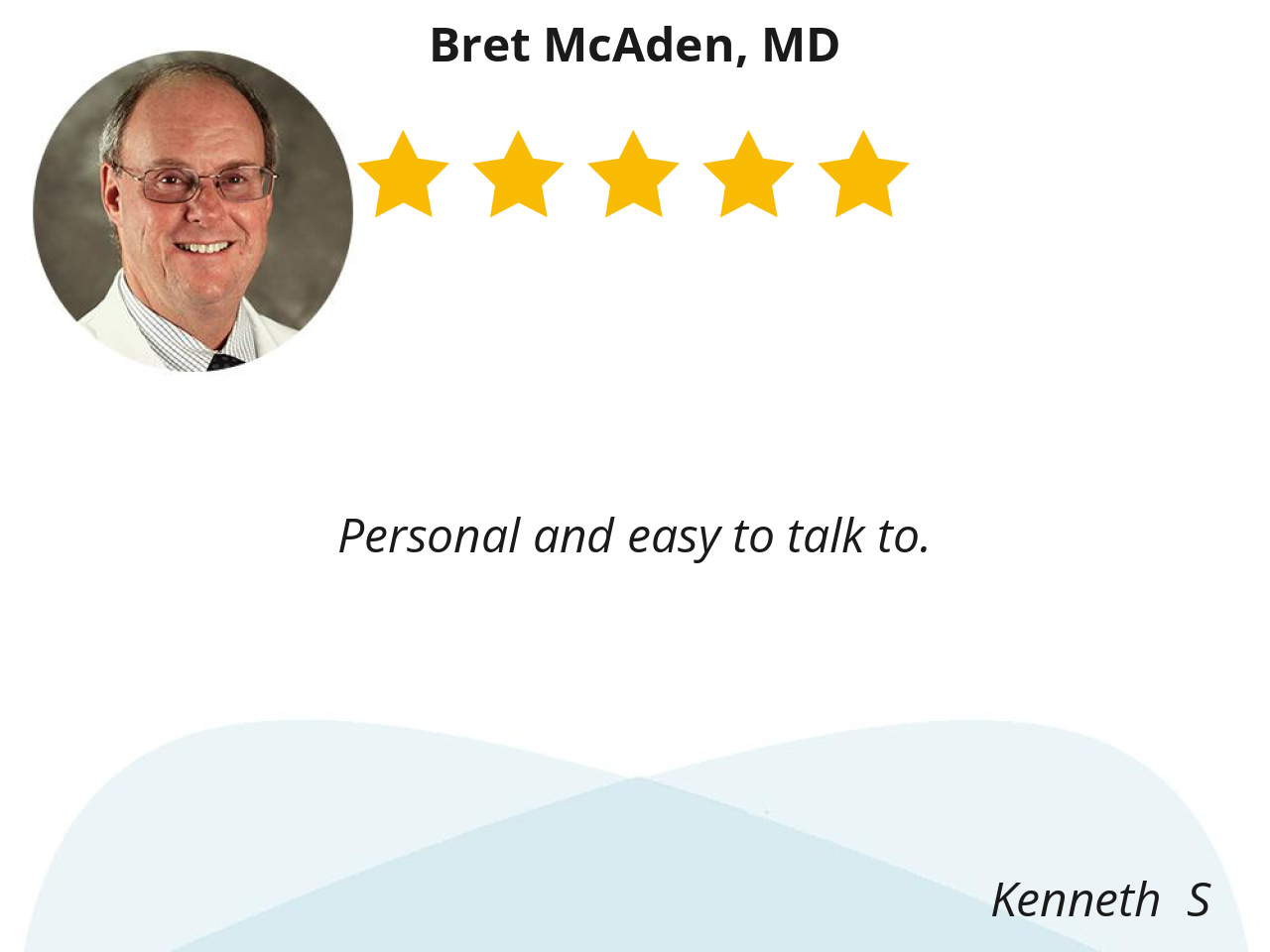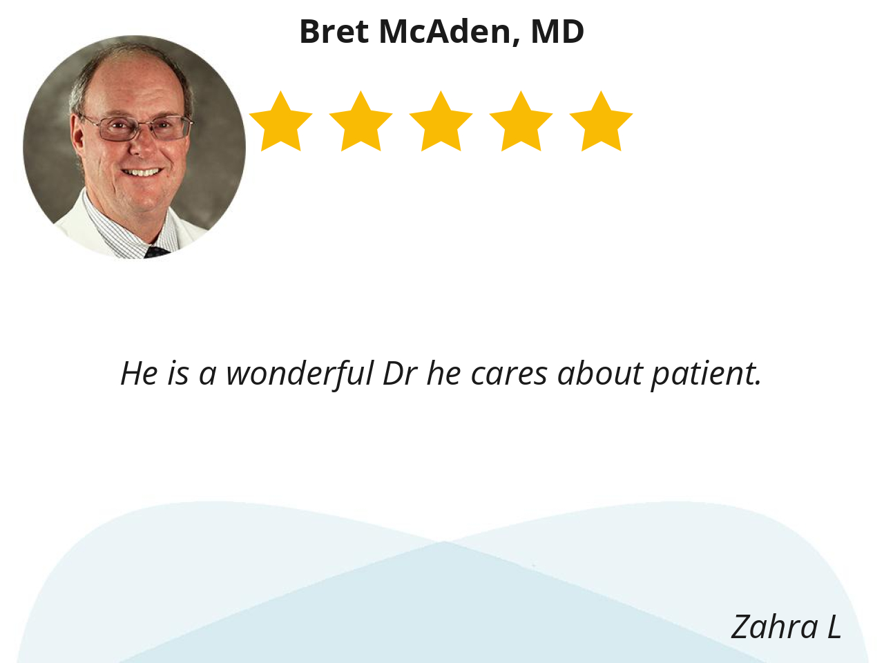 I like Dr. BRET BECAUSE HE LISTENS AND CARES FOR HIS PATIENTS