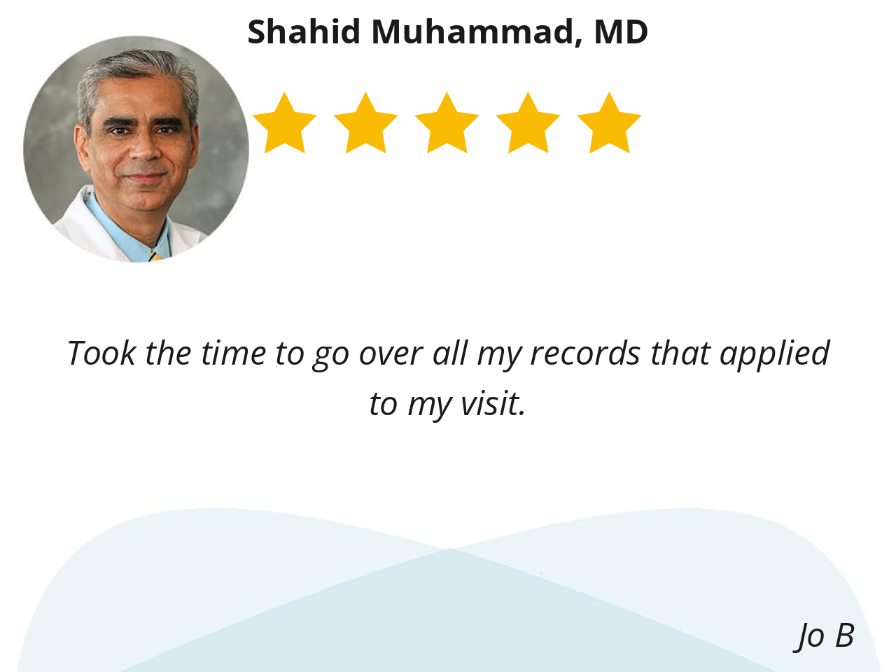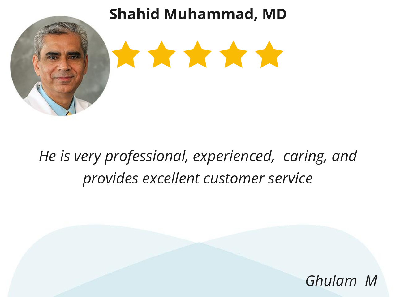 Dr Muhammad is very knowledgable, thorough and listens to you. He makes you feel comfortable and is always willing to help.